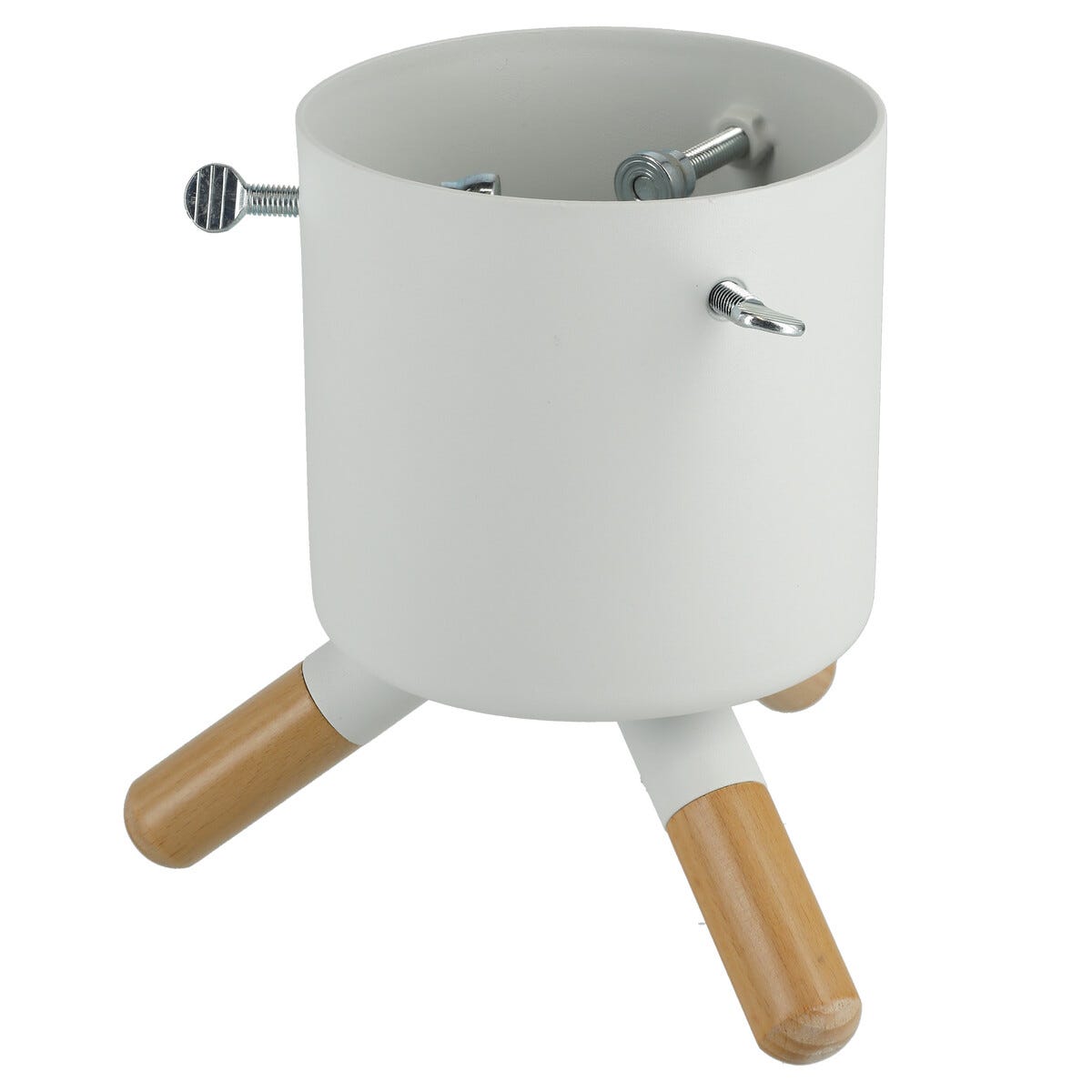 • Moderne juletrefot i lyst tre og hvit metall – rommer 1,4 liter vann.