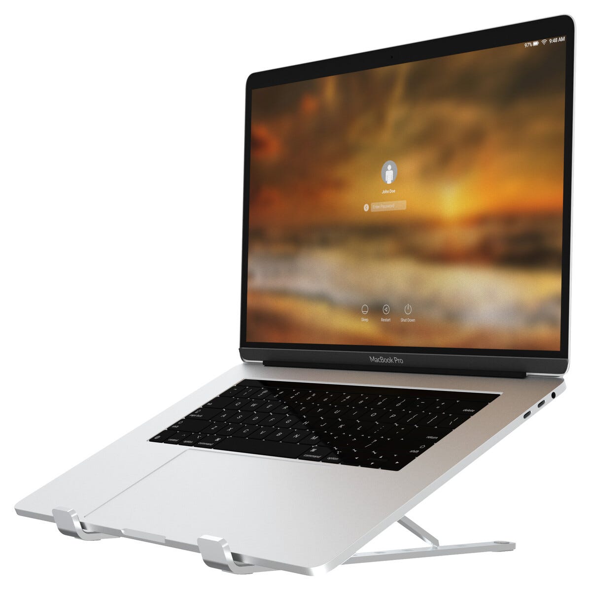 • Lett laptopstativ i robust aluminium med sklisikring.