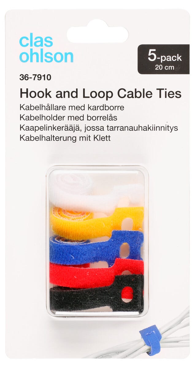 Kabelholder med borrelås, 5 stk/pk