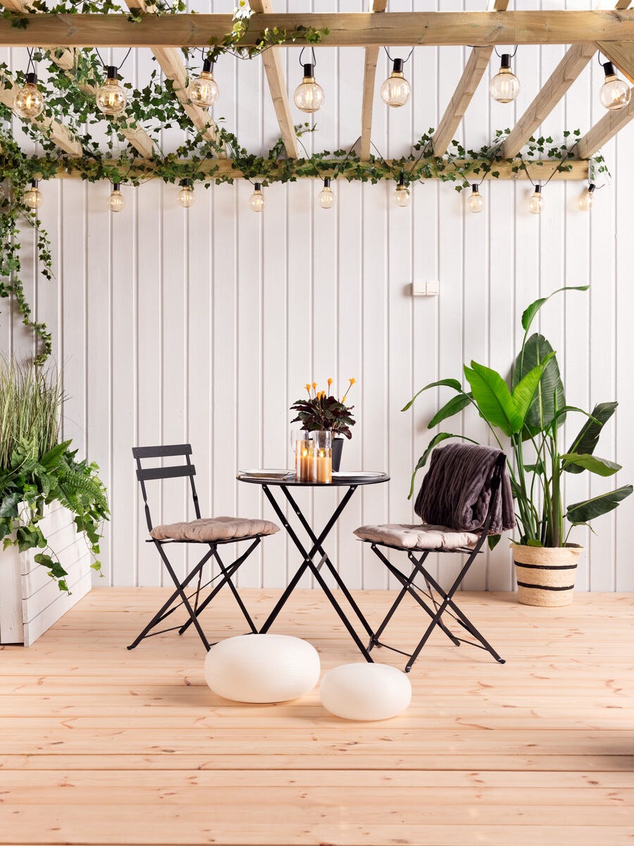 • Lettplasserte utemøbler – perfekt på balkongen, uteplassen eller i hagen.