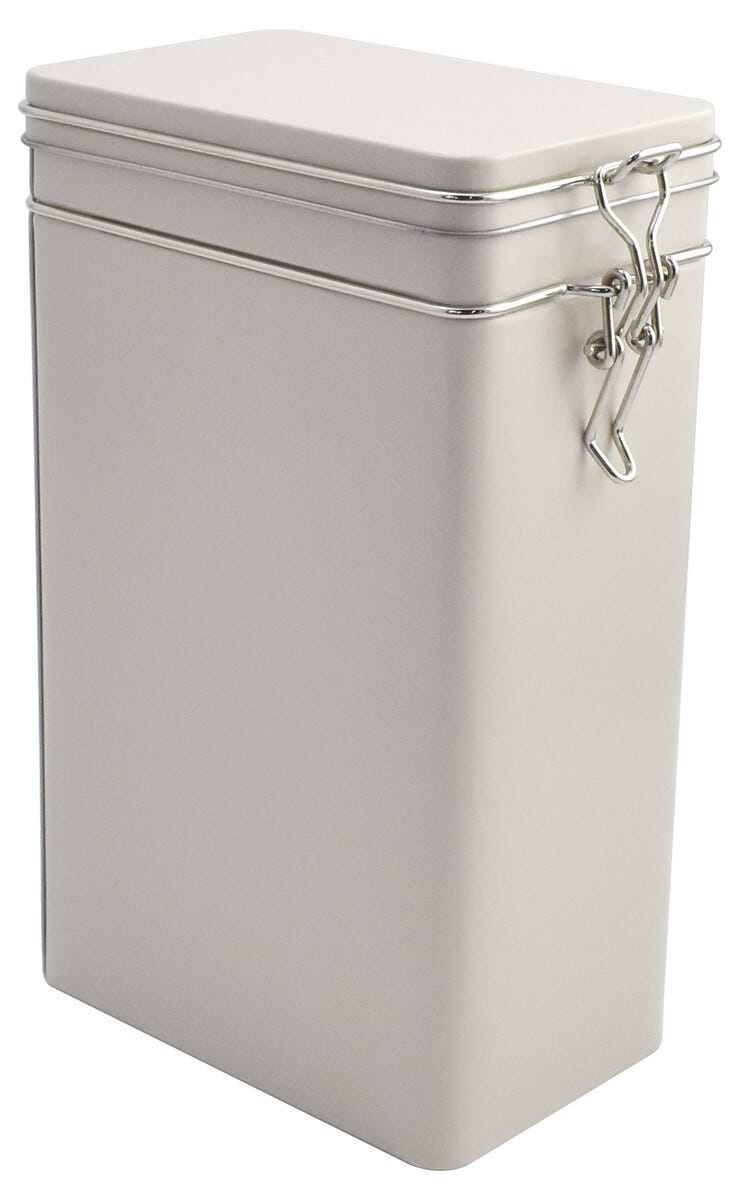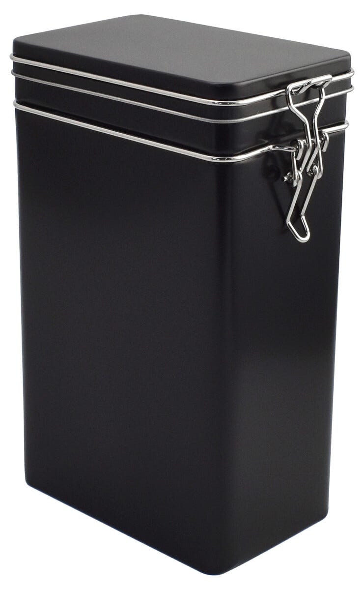 Kaffeboks, firkantet metallboks med tettsittende lokk