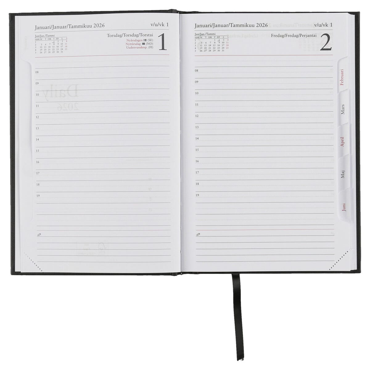 • Innbundet FSC®-merket kalender fra januar til desember 2026 – én dag per side.