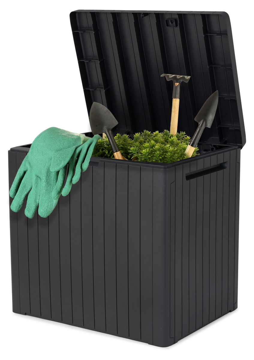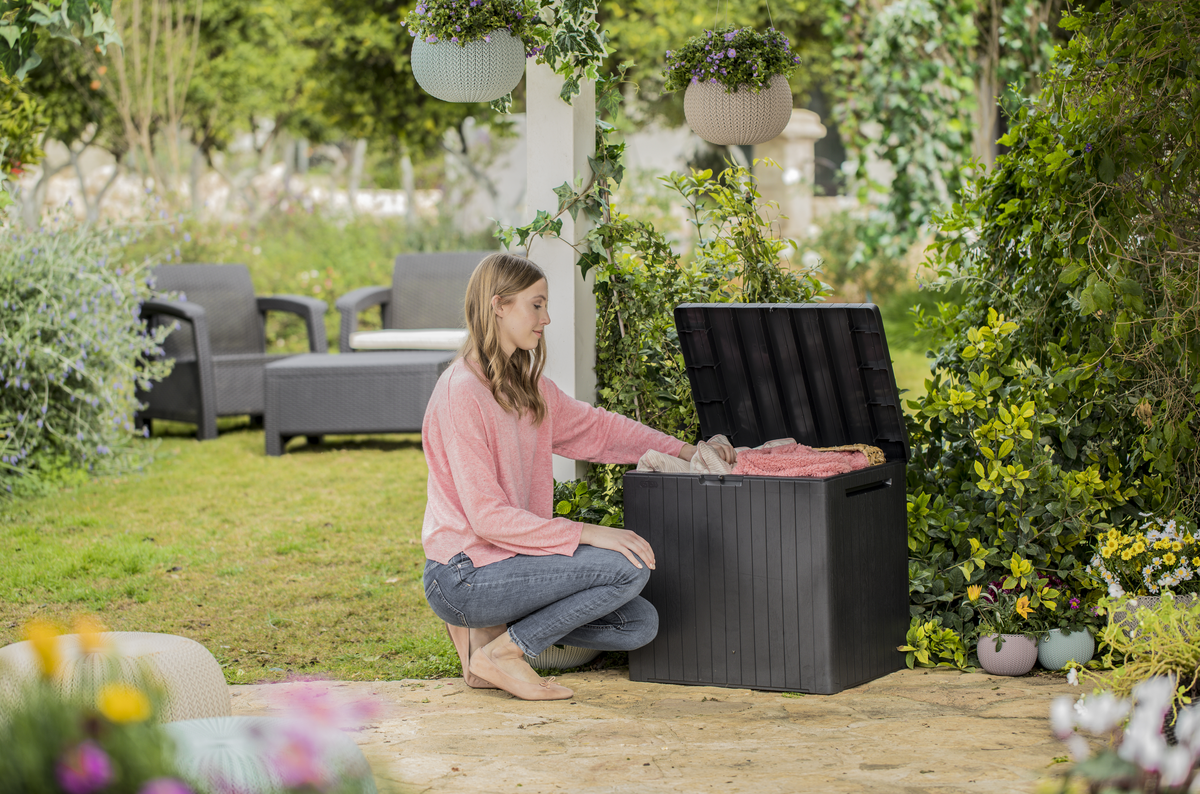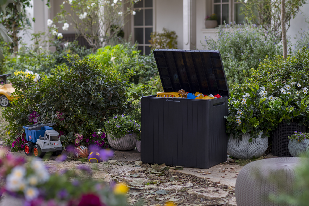 • Ideell til oppbevaring av puter, leker eller hageredskap.