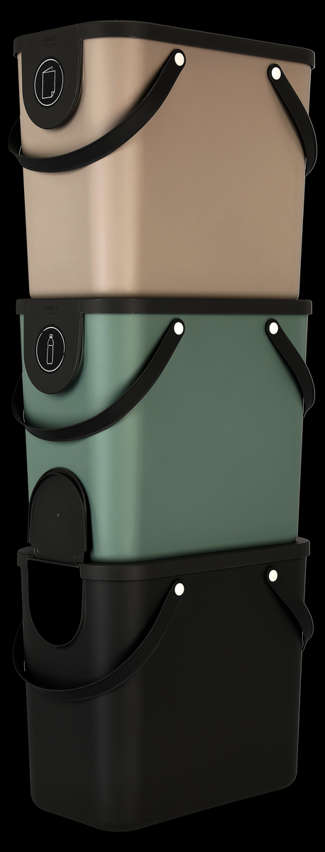 • Praktisk lokk og håndtak – lett å kildesortere i.
