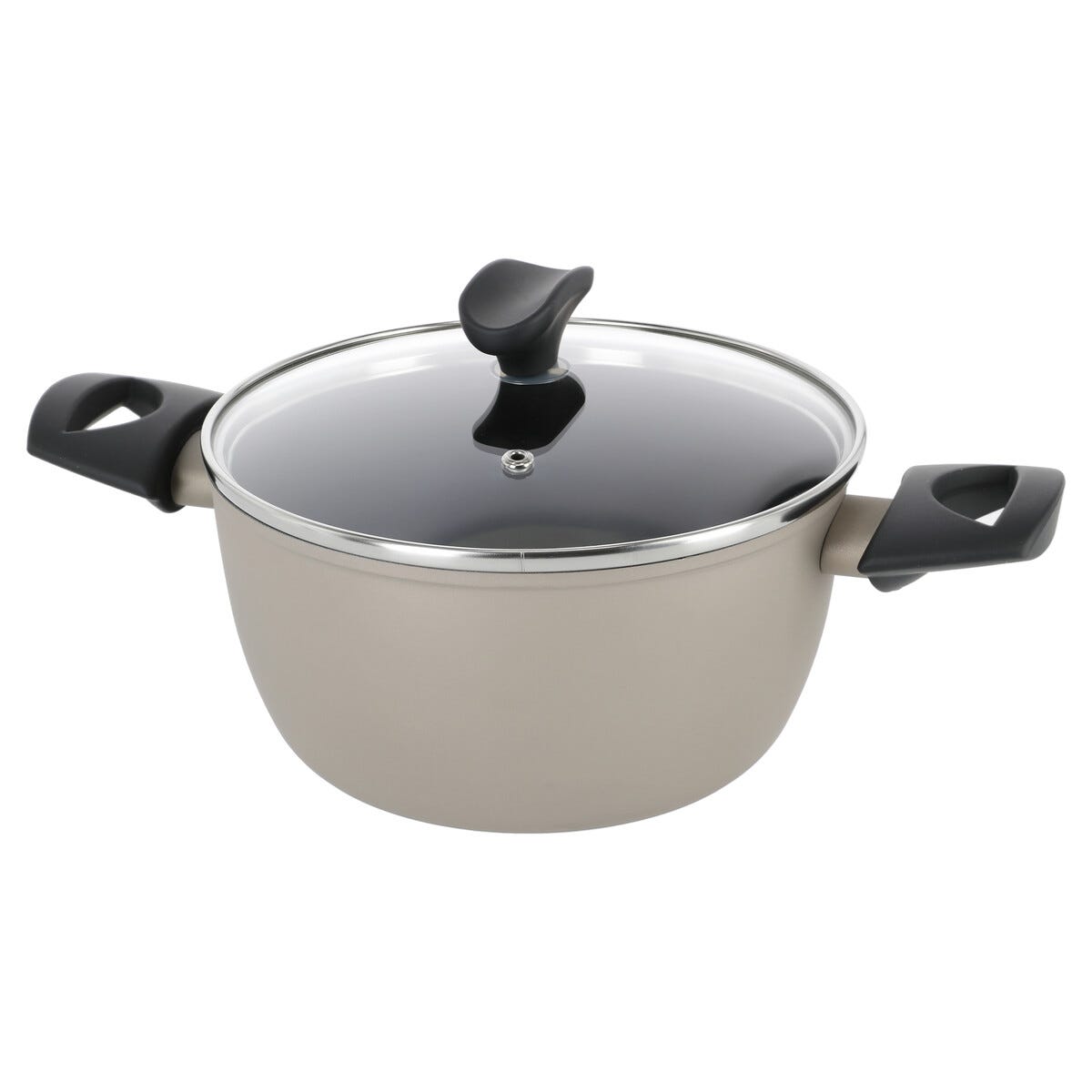 Kjele med glasslokk 2,5 l keramisk non stick, sand