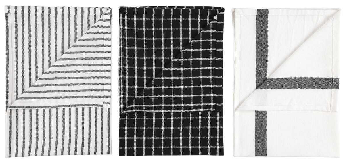 • 3-pakning med bomullshåndklær – kan brukes som oppvaskhåndkle eller håndhåndkle.
