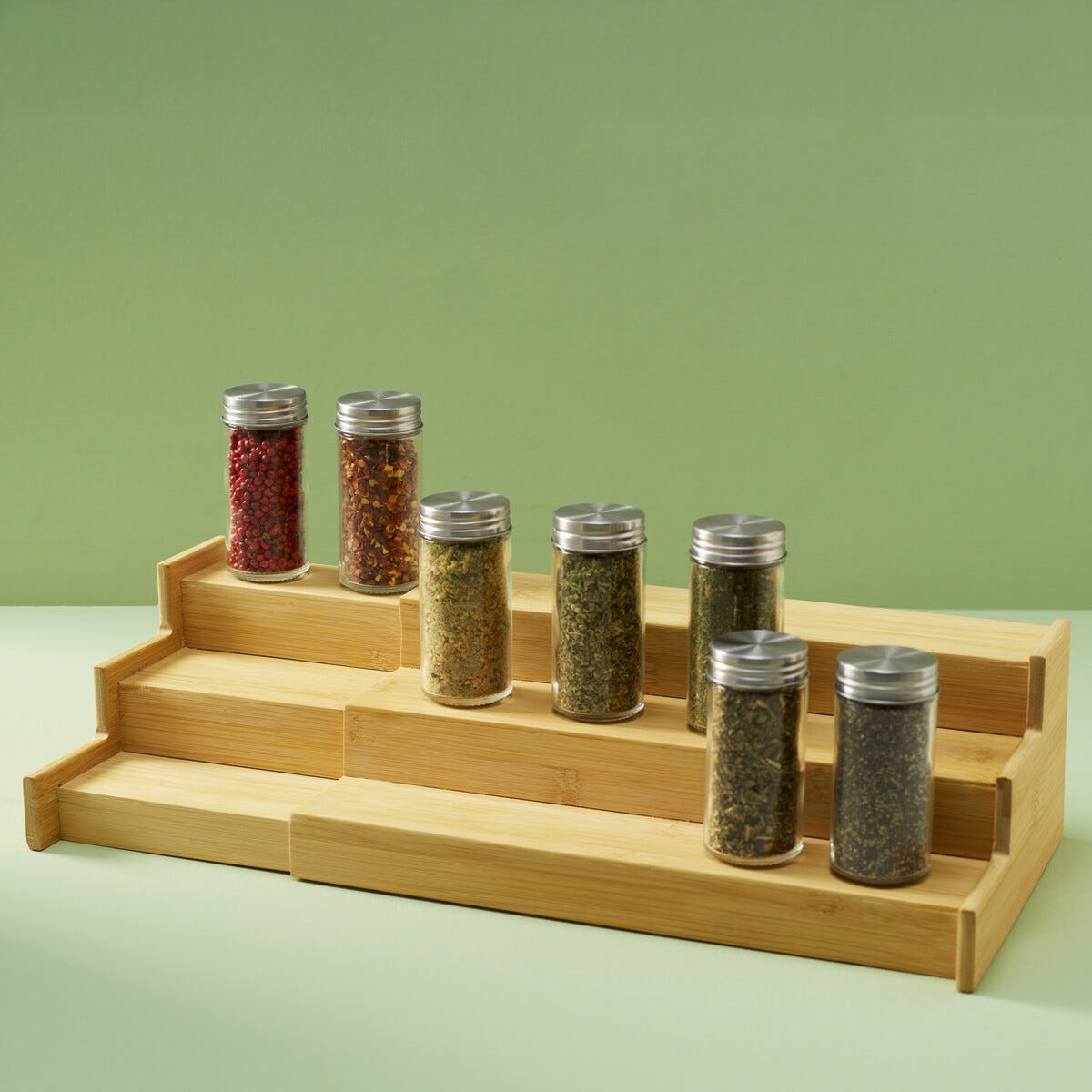 • Justerbar krydderhylle i tre – gir oversikt i små og store kjøkken.