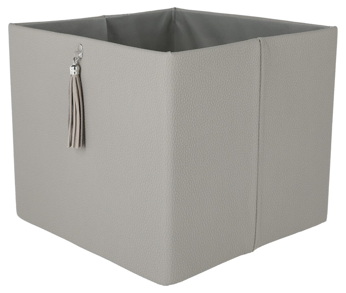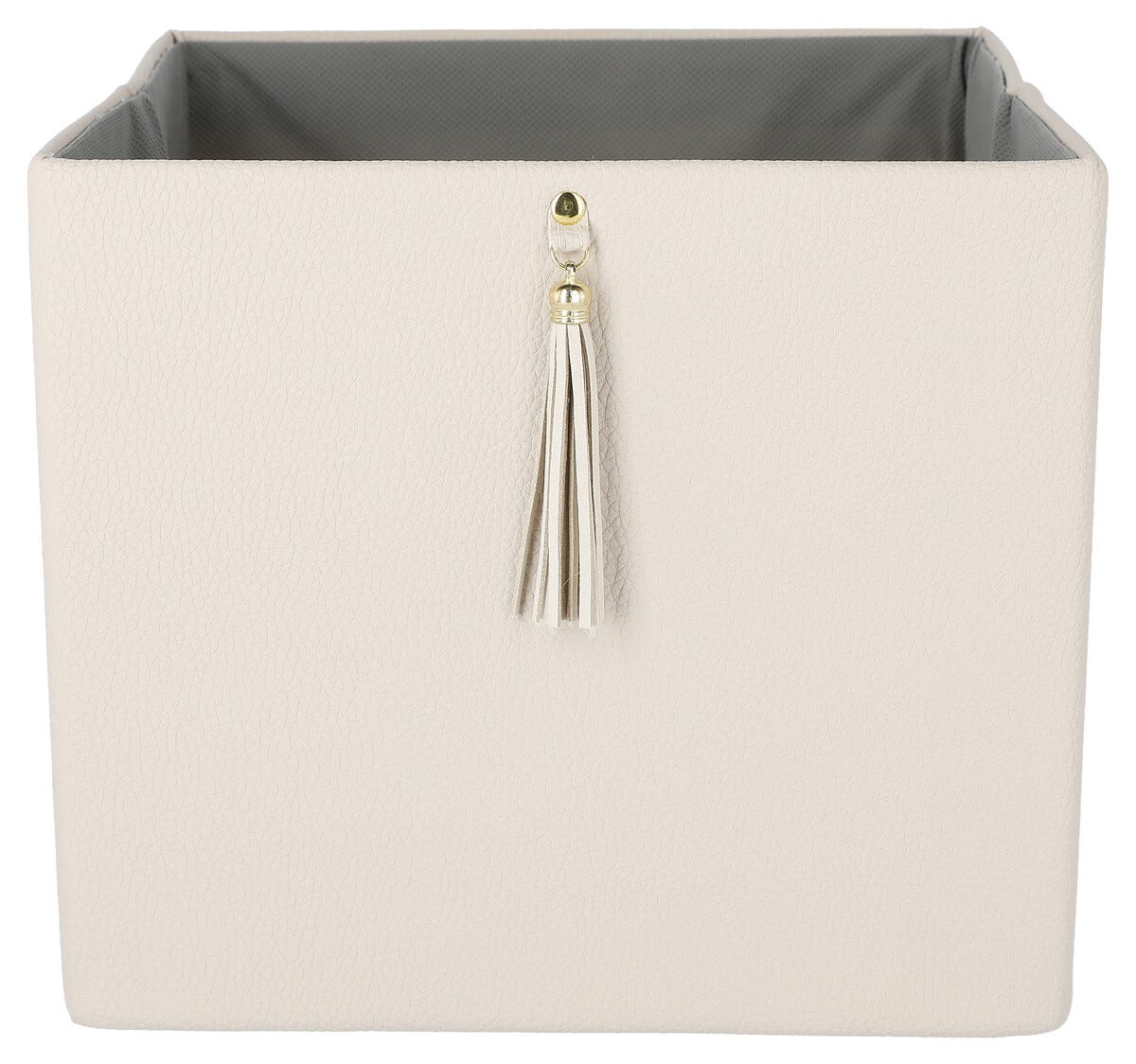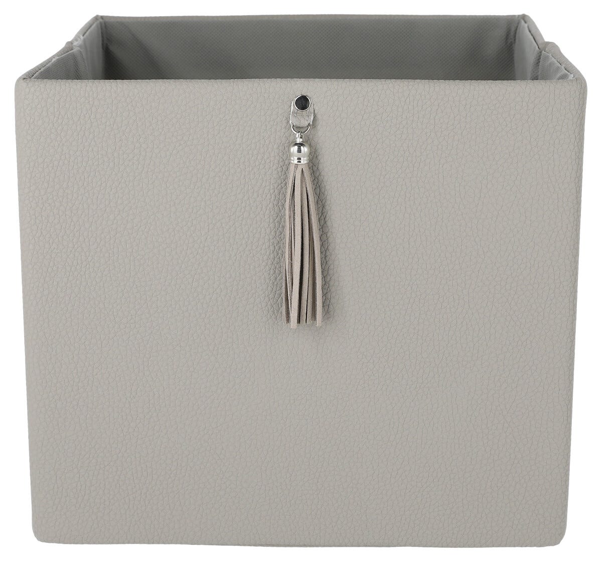 • Elegant oppbevaring i lærimitasjon med dekorativ dusk.