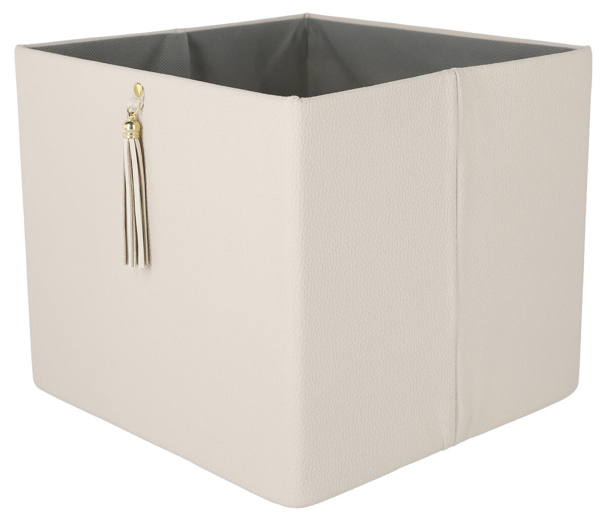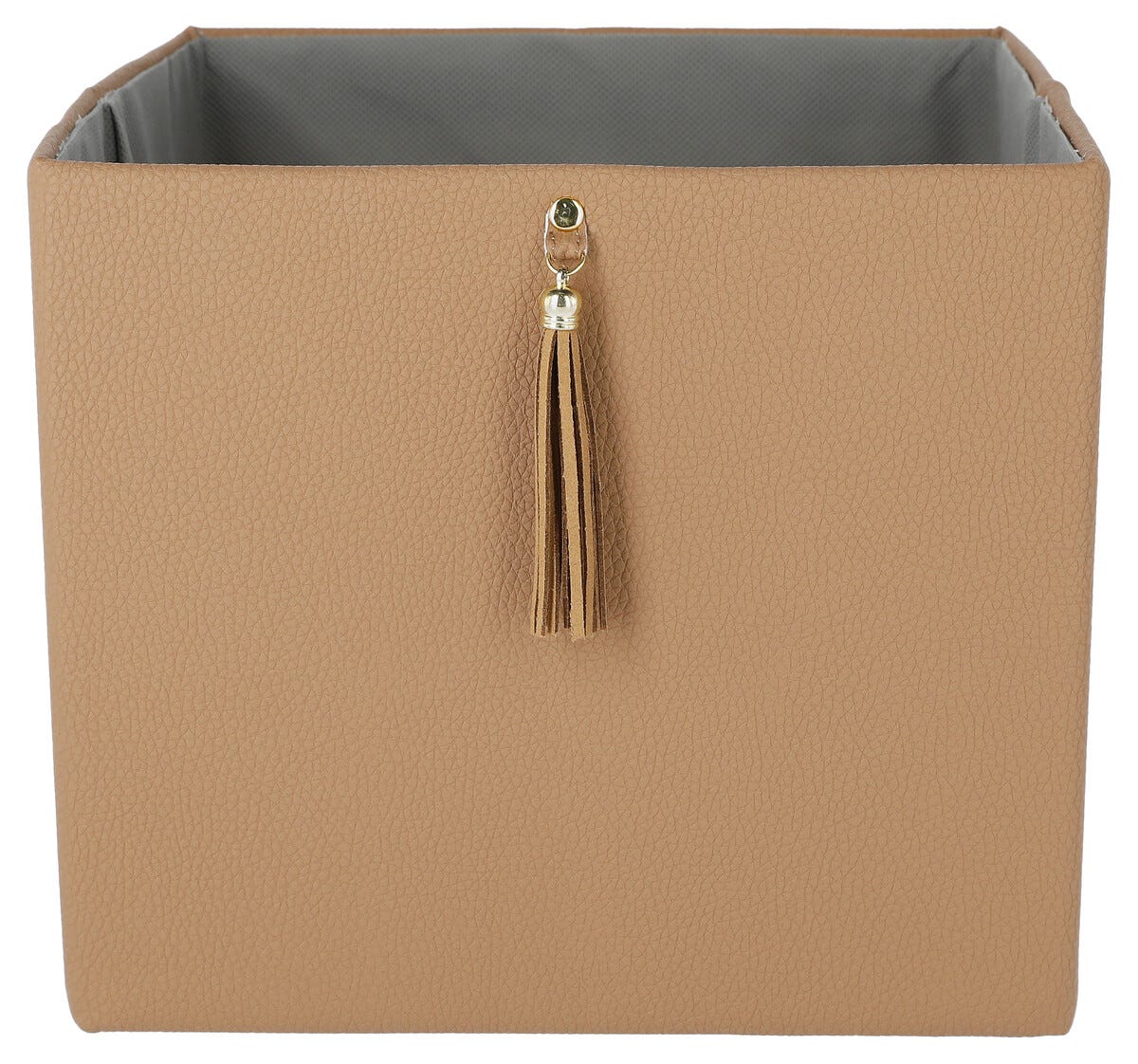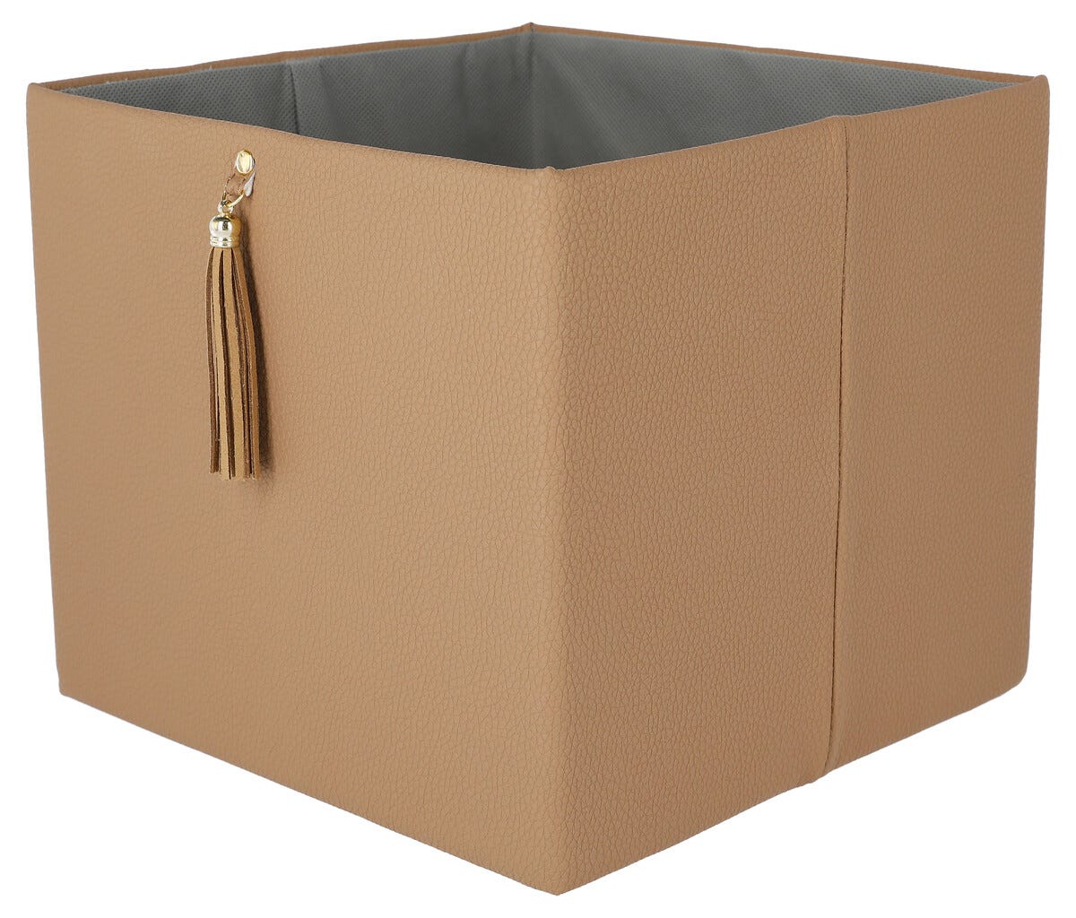 • Elegant oppbevaring i lærimitasjon med dekorativ dusk.