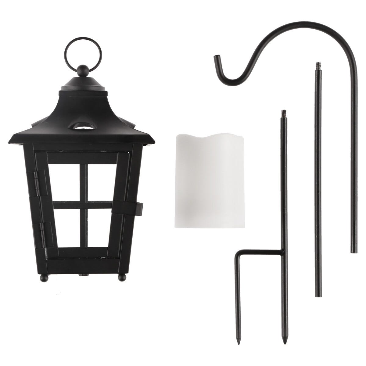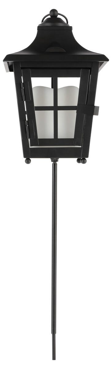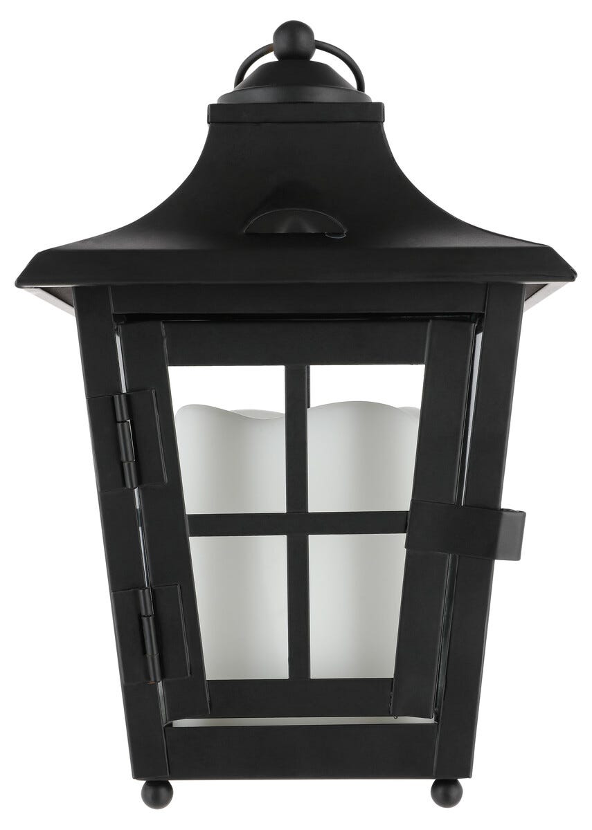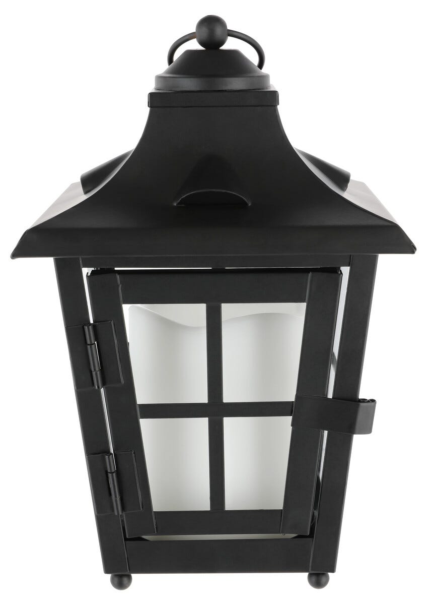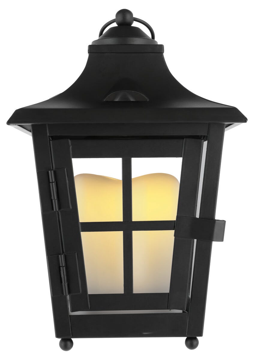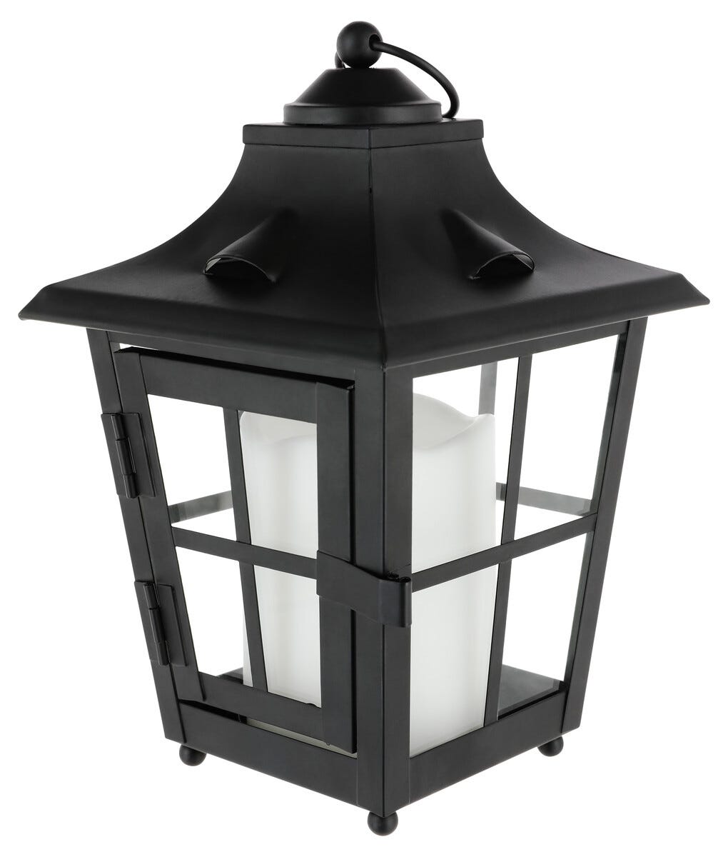 • Svart LED-lykt med batteridrevet kubbelys – kan brukes som gravlykt.