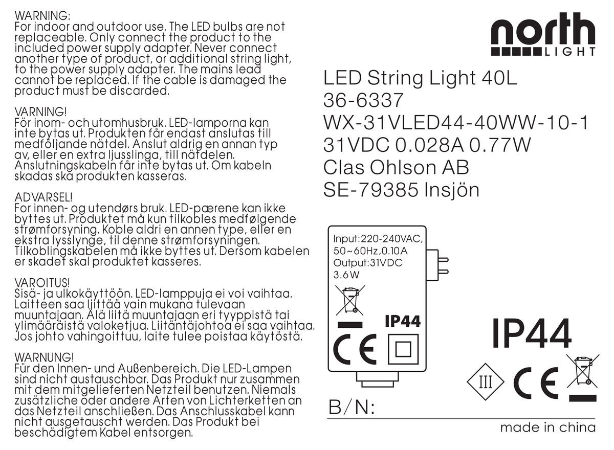 • Gjennomsiktig og diskret lyslenke som kan vikles rundt gjenstander eller henges opp.