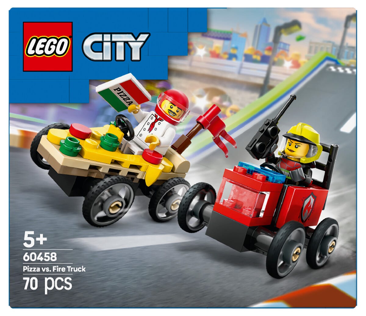 LEGO City racinglekesett med pizzabil mot brannbil 60458, fra 5 år