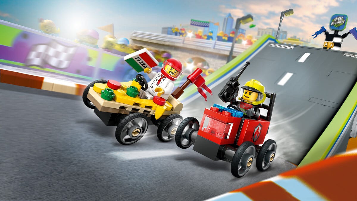 • LEGO City pizzabil mot brannbil – et lekesett for barn som elsker actionfylte konkurranser.
