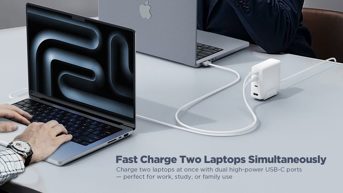 • Porter: 3 × USB-C og 1 × USB-A. Strømkabel (1,5 m) inkludert.