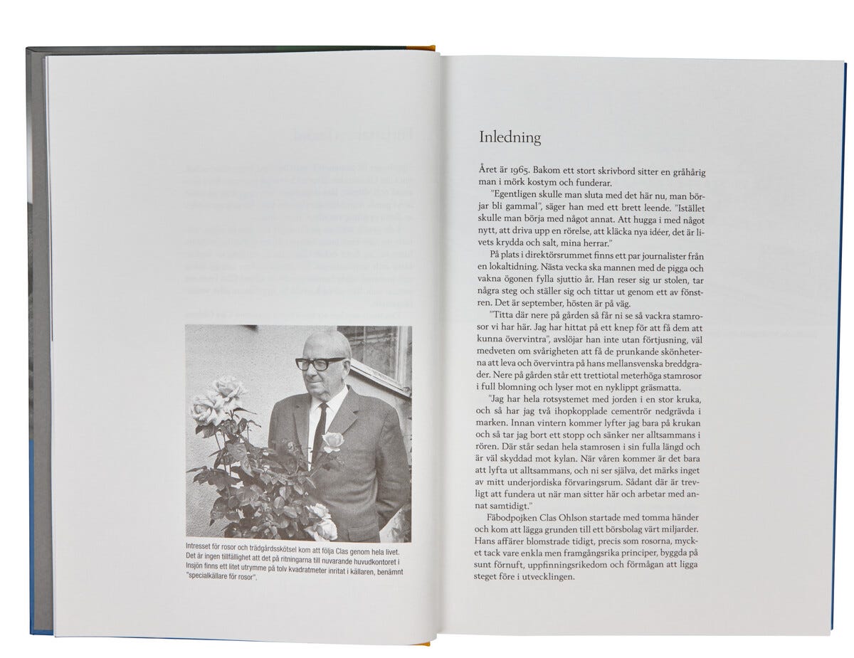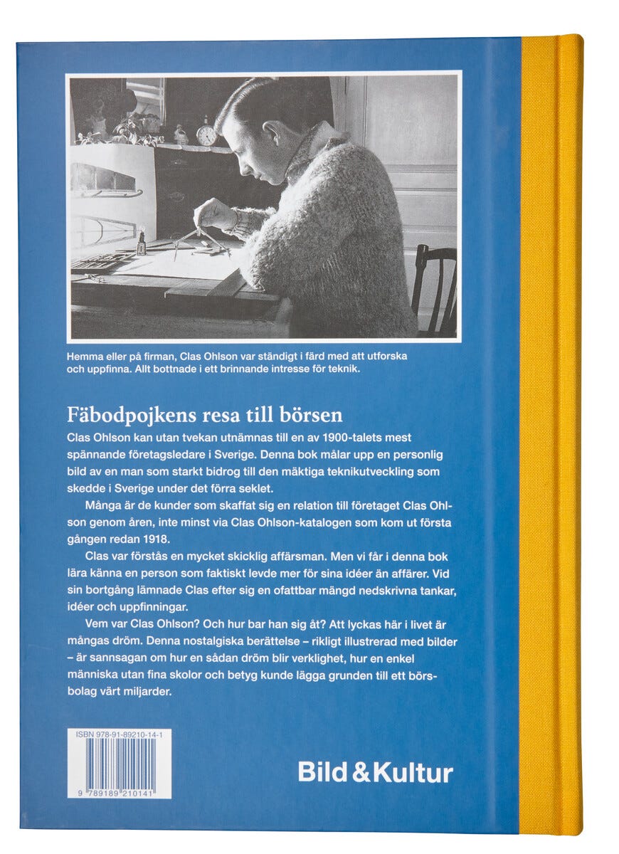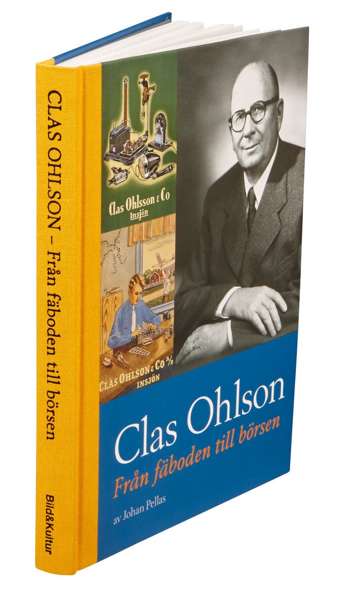 De fleste kjenner til foretaket Clas Ohlson, men ikke så mange vet noe om mannen som grunnla det. Nå kommer boken om Clas Ohlson. I ”Från fäboden till börsen” får vi følge hvordan Clas med to tomme hender bygget opp et foretak som i dag omsetter for over fire milliarder kroner.Boken er skrevet av Johan Pellas fra Leksand, på oppdrag av Clas’ familie. Mengder av intervjuer og dypdykk i presseklipp ga ham tilstrekkelig med informasjon til å kunne skildre Clas som person.
