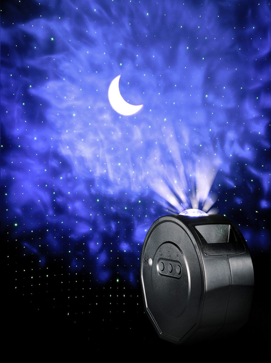 • Lampen projiserer måne og stjernehimmel på vegger eller tak.