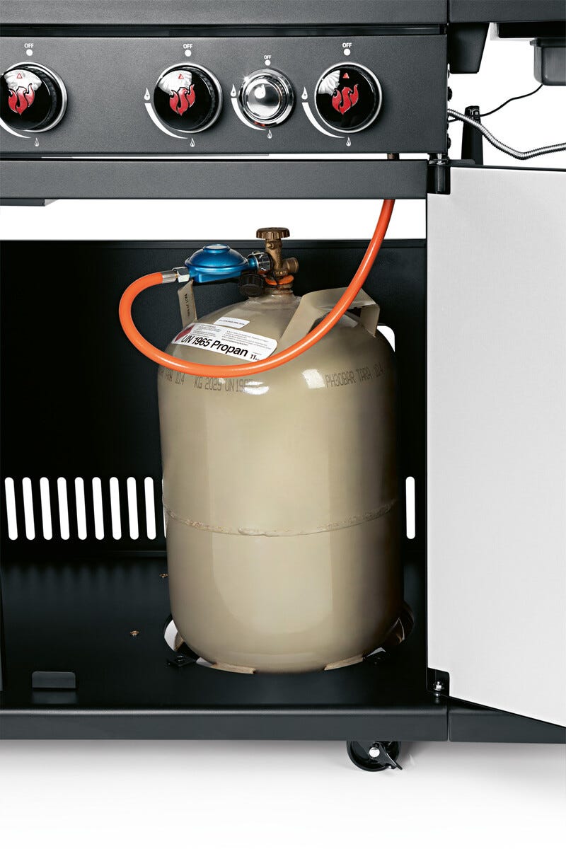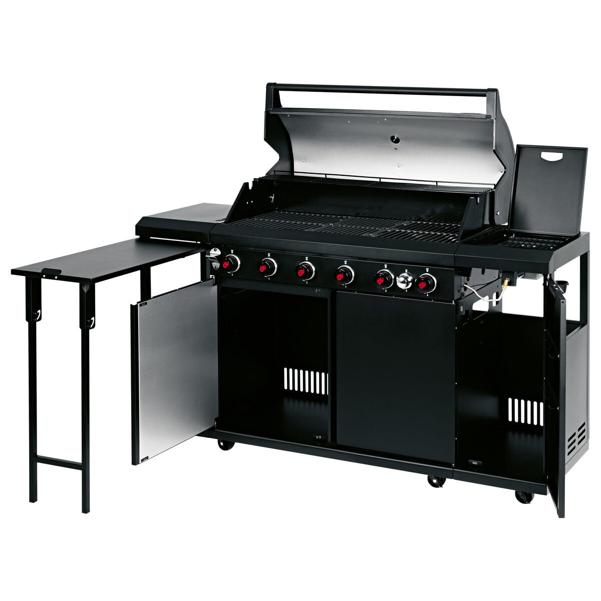 • Stor grill med 6 gassbrennere på 3,5 kW for jevn varme over hele grillen.