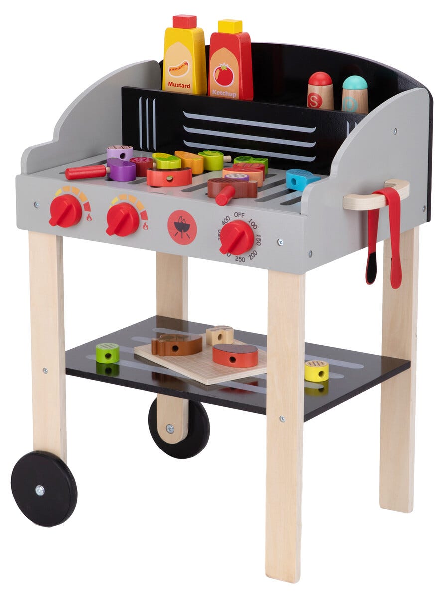 • Lekegrill som utvikler barns sosiale ferdigheter med matlagingslek.