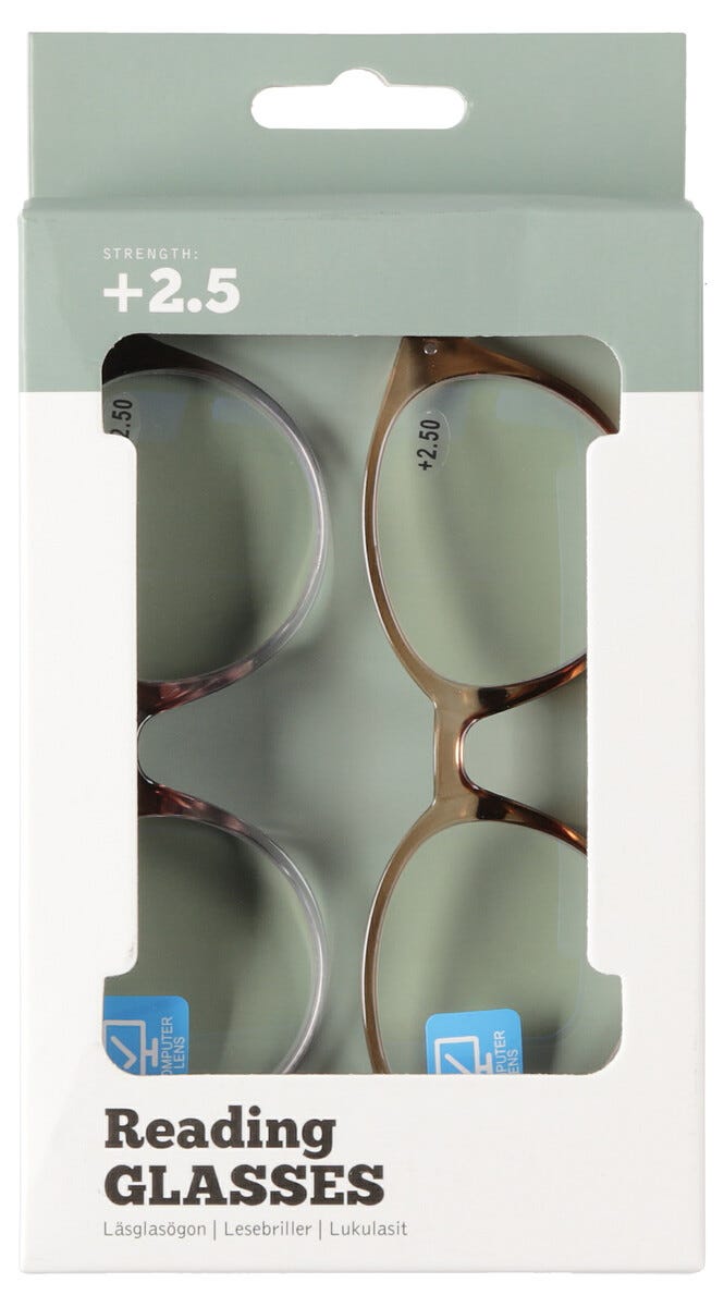 Lesebriller med blålysfilter, brun og lilla, 2-pakning