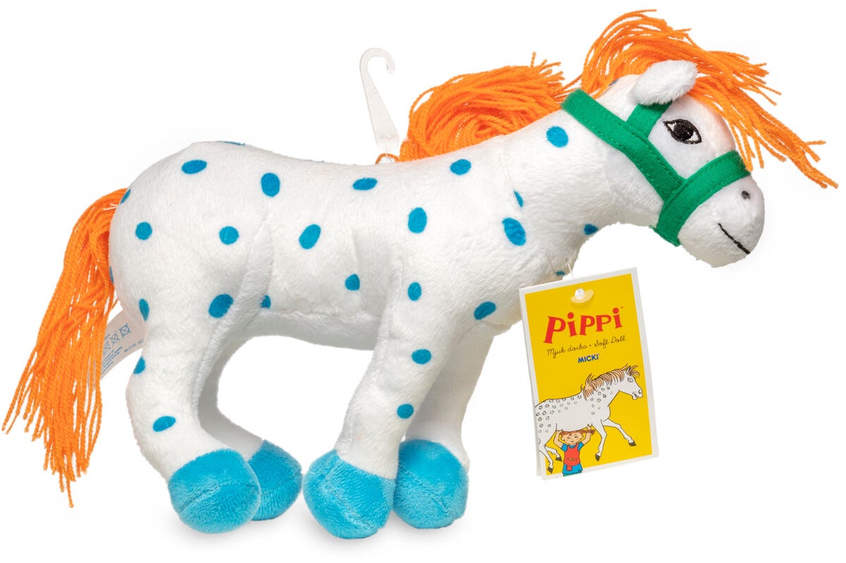 • En myk og praktisk versjon av Pippis helt egne prikkete hest.