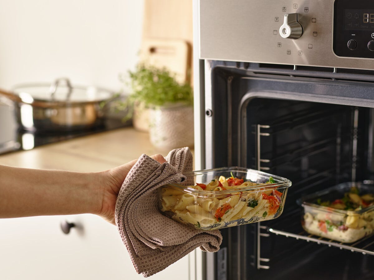 • Matboks i glass for matoppbevaring i kjøleskap og kjøkkenskap.