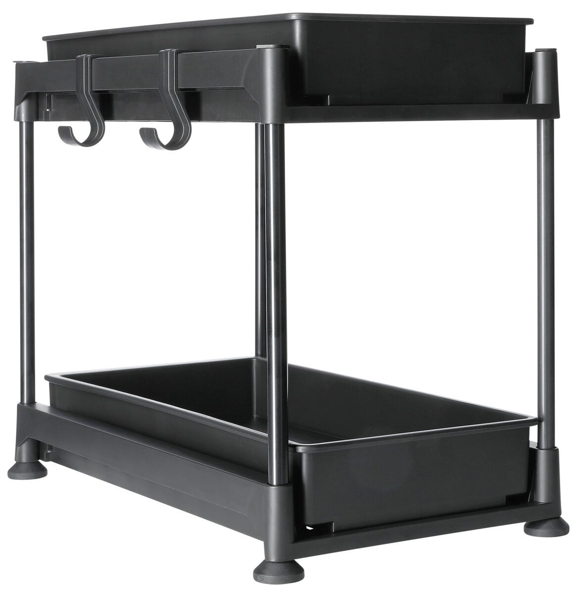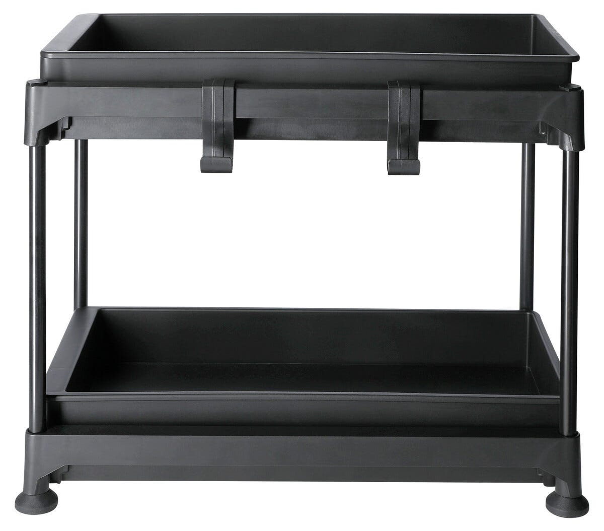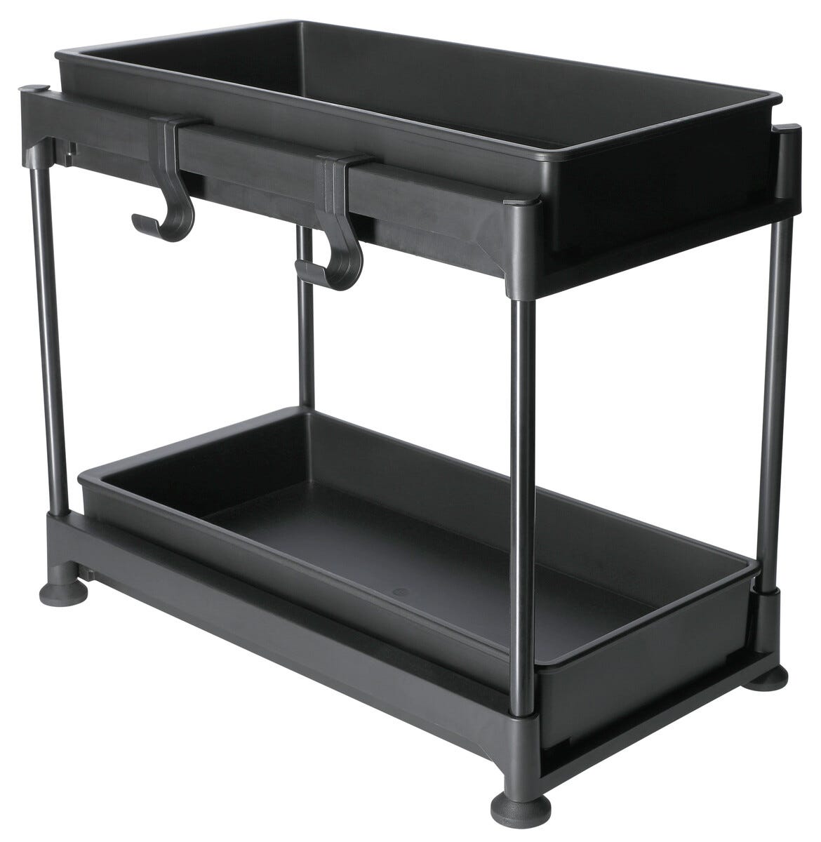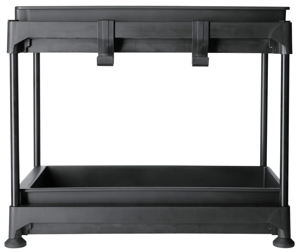 2 Hylleplan og 2 kroker medfølger. Sklisikre føtter.