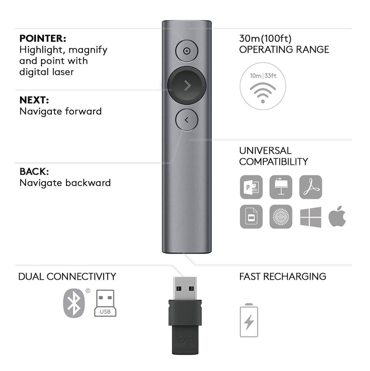 Logitech Spotlight Presentation Remote, trådløs fjernkontroll