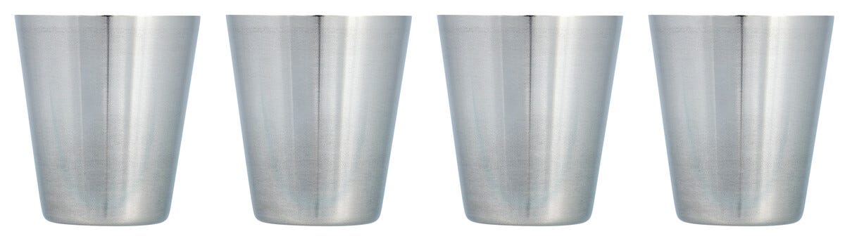 • Flaske, trakt og fire små kopper i rustfritt stål følger med.