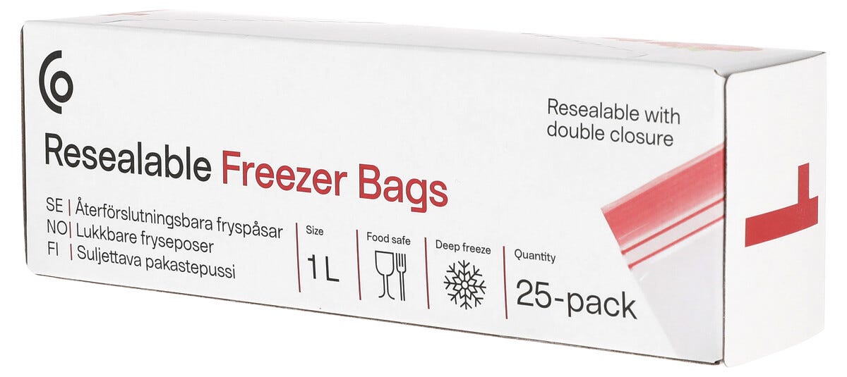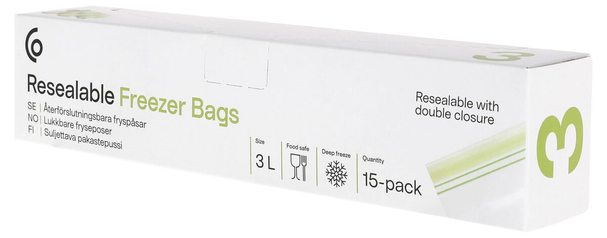 • Fryseposene finnes i størrelsene 0,5, 1, 2, 3 og 5 liter.