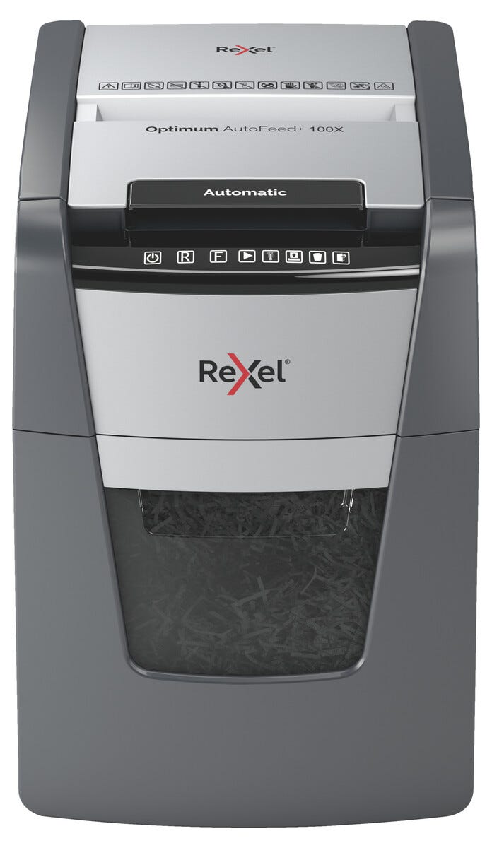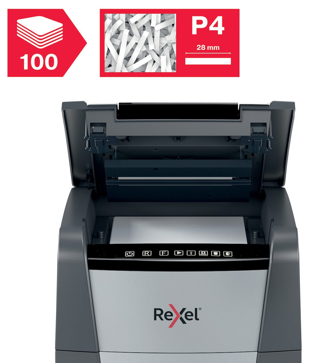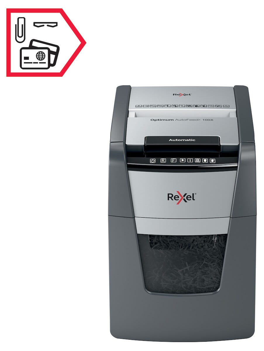 • Rexel Optimum AutoFeed+ 100X – cross-cut med sikkerhetsklasse P4.