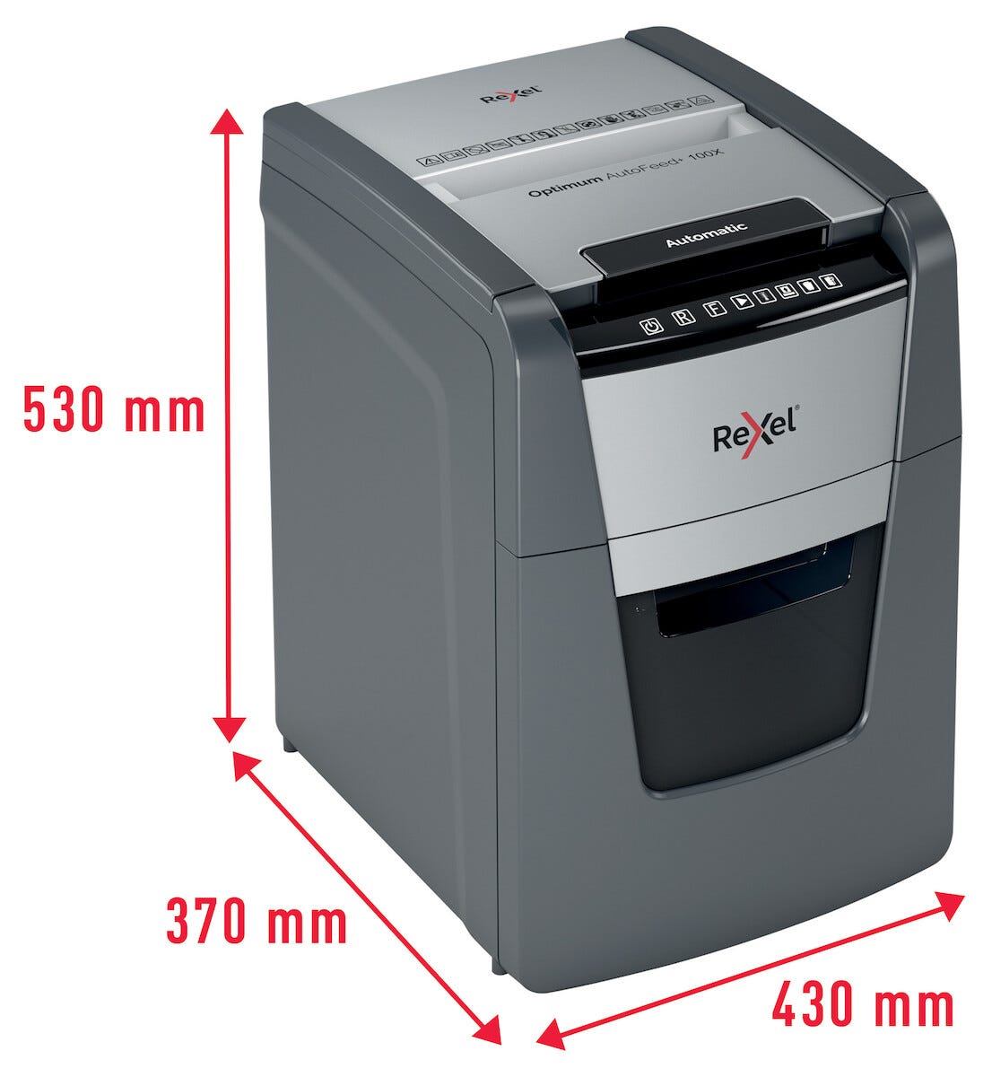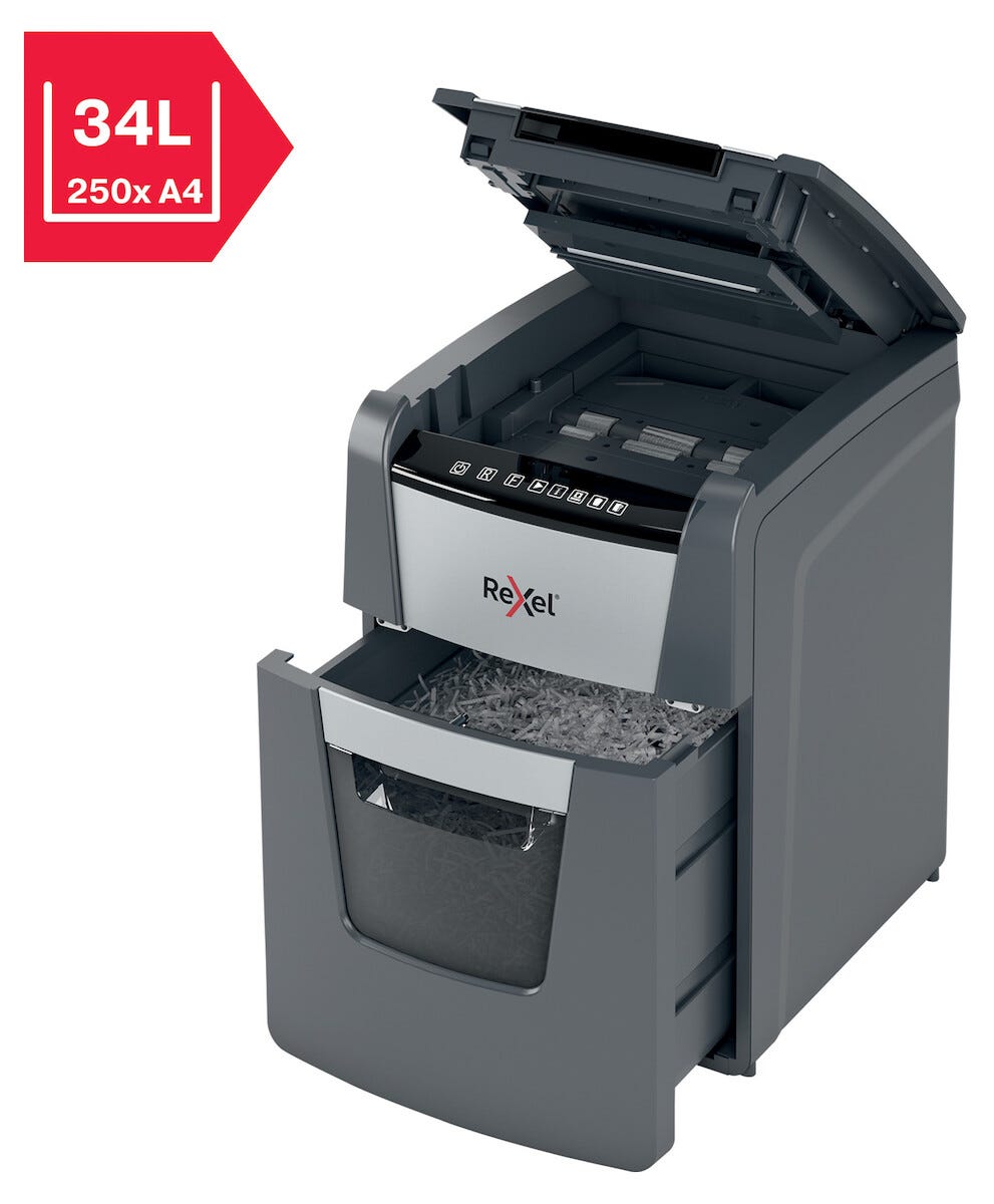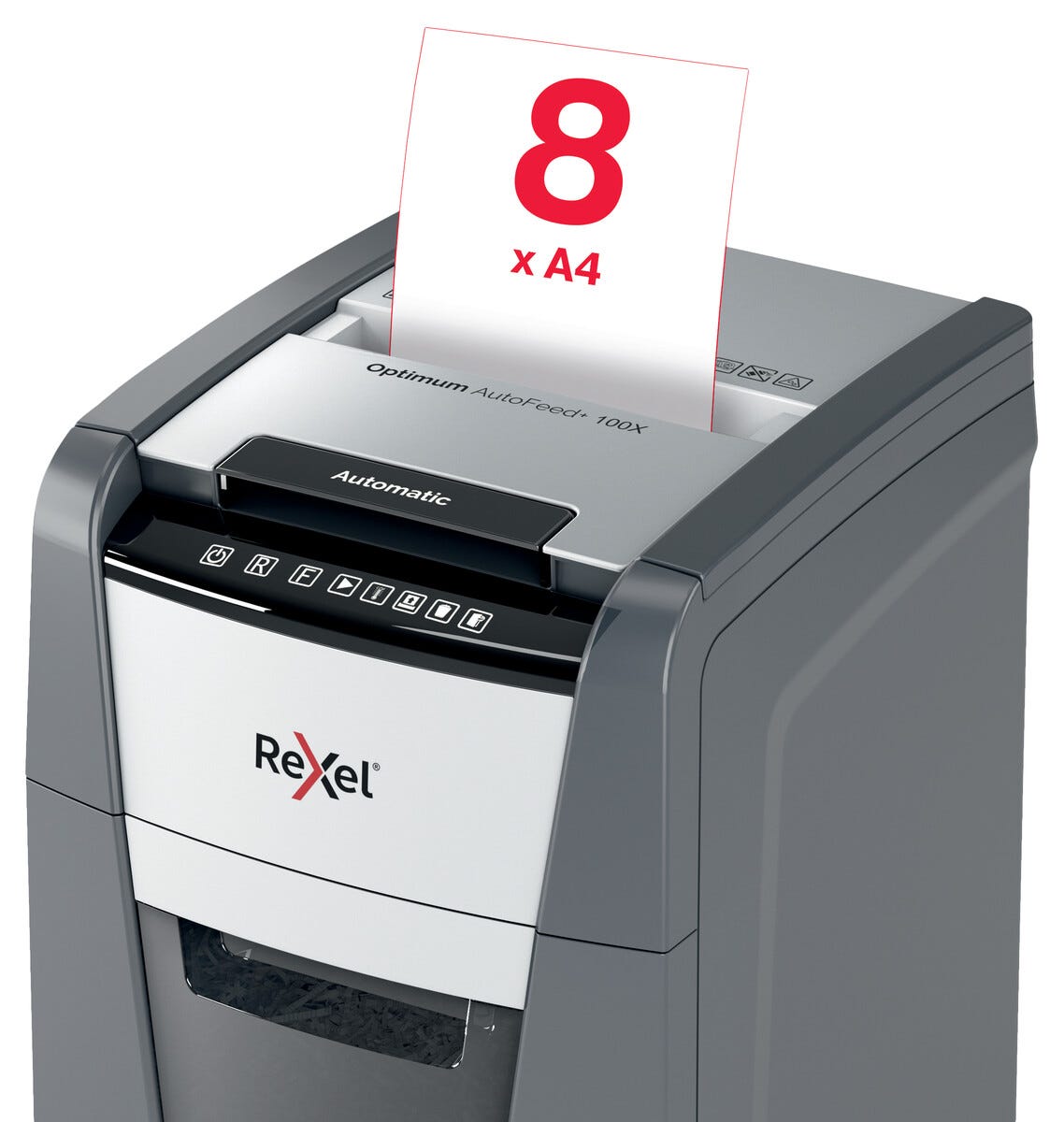 • Rexel Optimum AutoFeed+ 100X – cross-cut med sikkerhetsklasse P4.