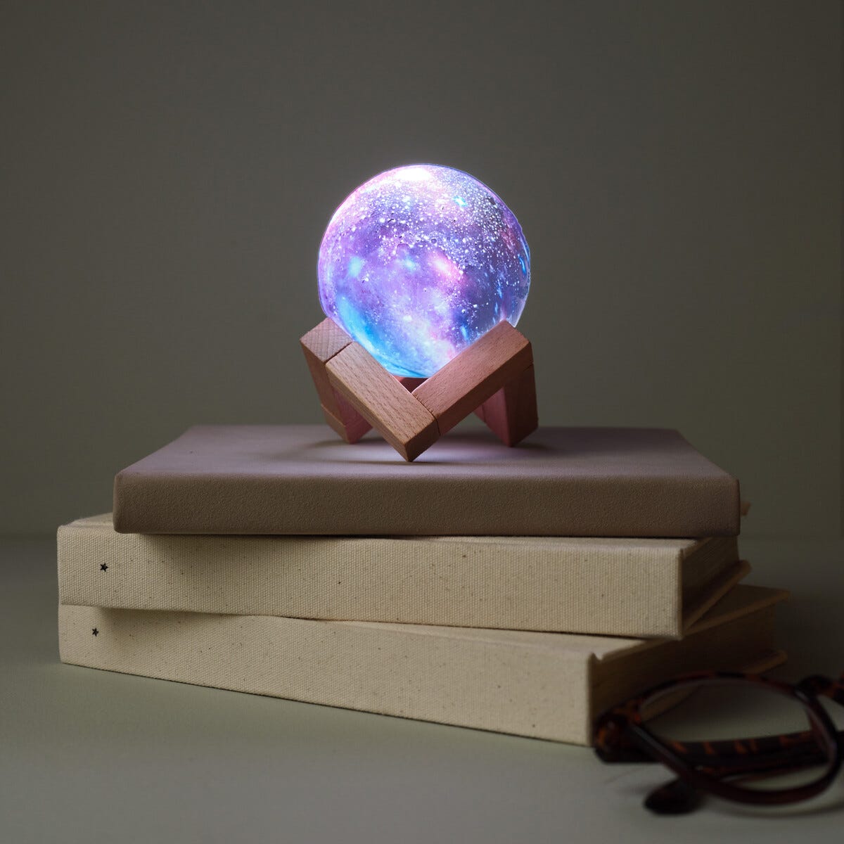 • Stemningskapende bordlampe med trestativ og galaxymotiv.