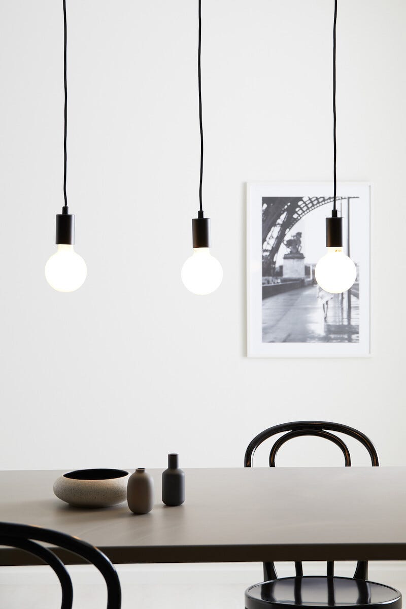 • Tekstilkledde ledninger (hver på 1,5 m) – passer også der det er høyt under taket.
