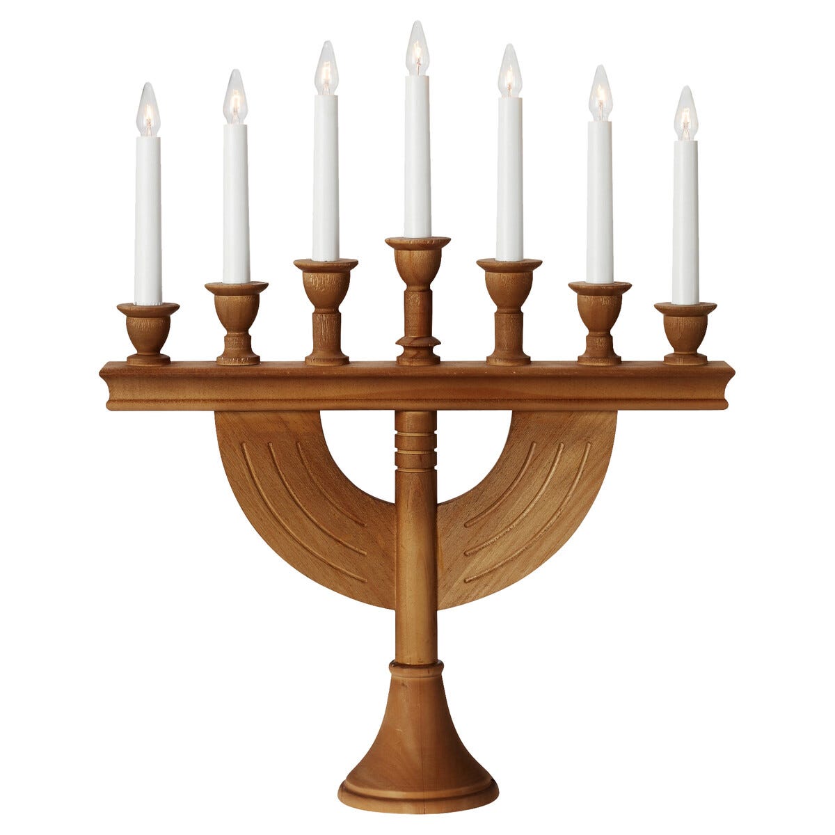 • Markslöjd Torpa adventsstake LED – 7-armet lysestake i brunbeiset tre.