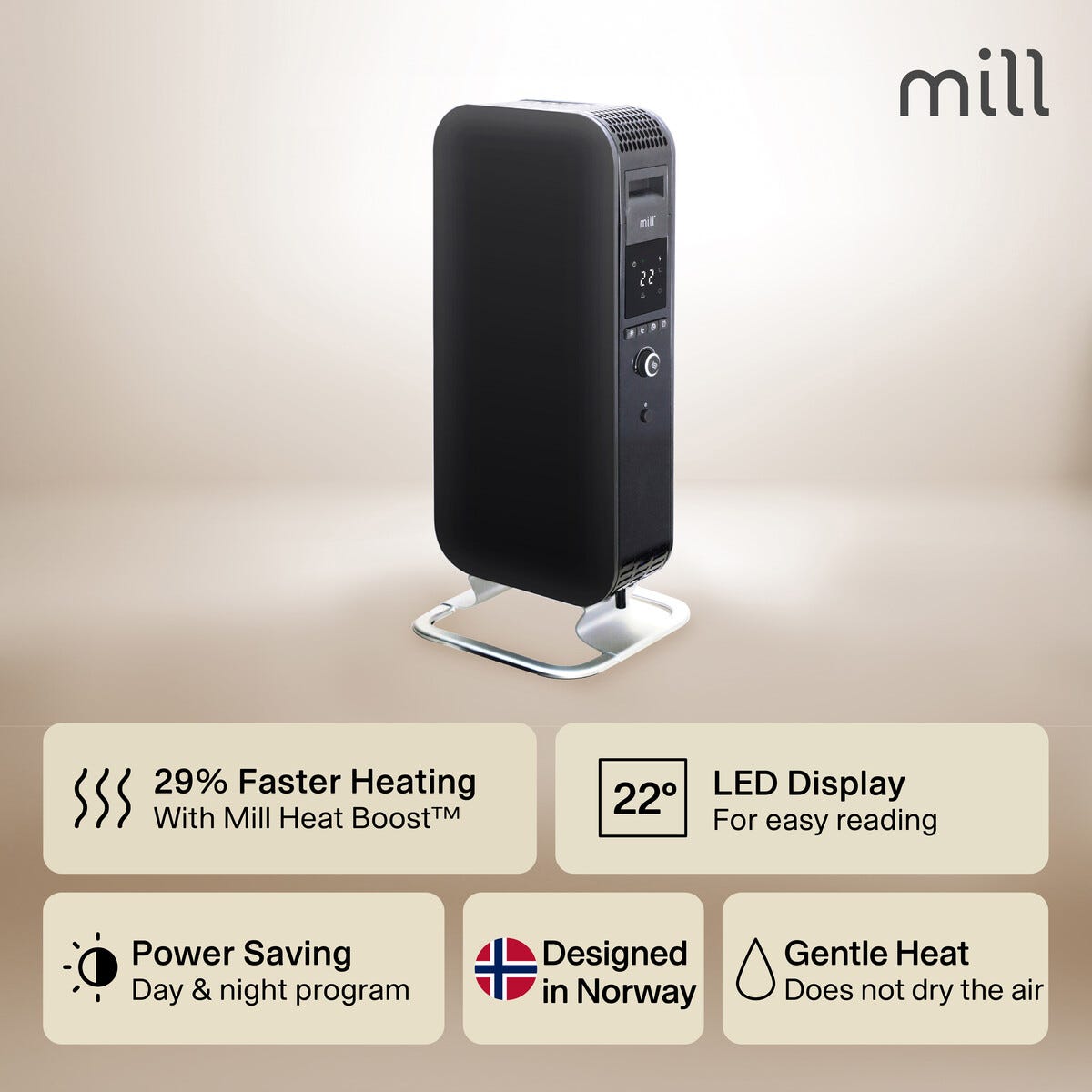 • Mill AB-H1000DN oljeovn med 3 effekttrinn (400 W, 600 W og 1000 W).