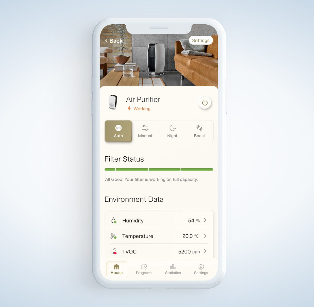 • Antibakterielt HEPA-filter i medisinsk kvalitet – renser opptil 115 m².