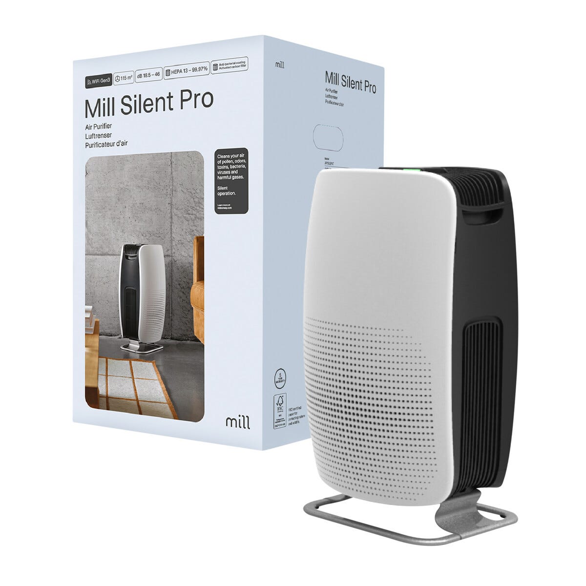 • Mill Silent Pro smart luftrenser – ren luft i rom på 40 m² i løpet av 10 minutter.