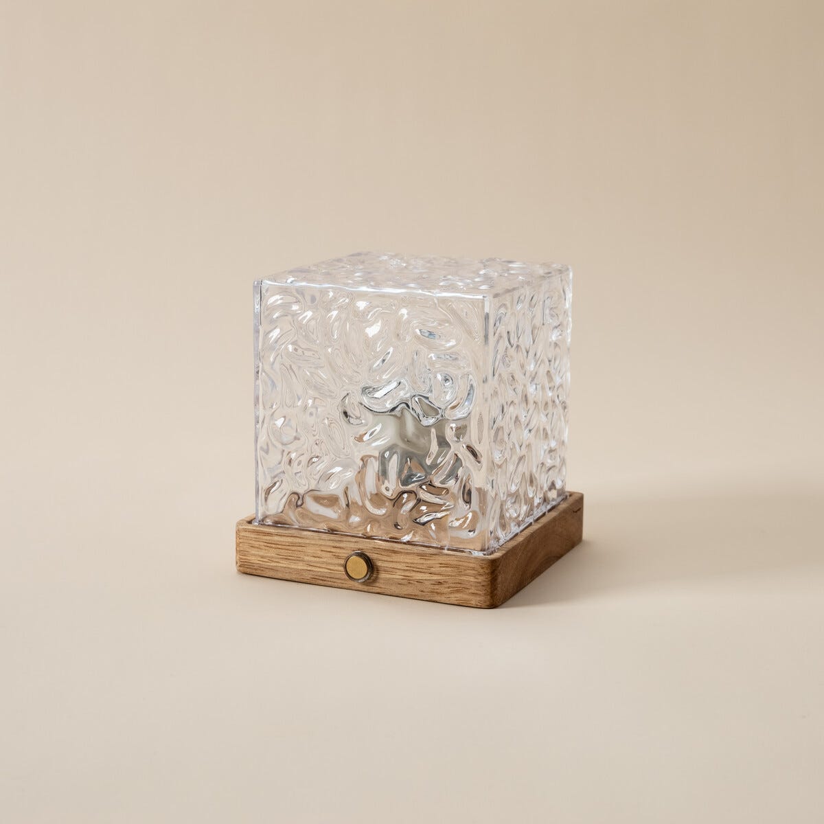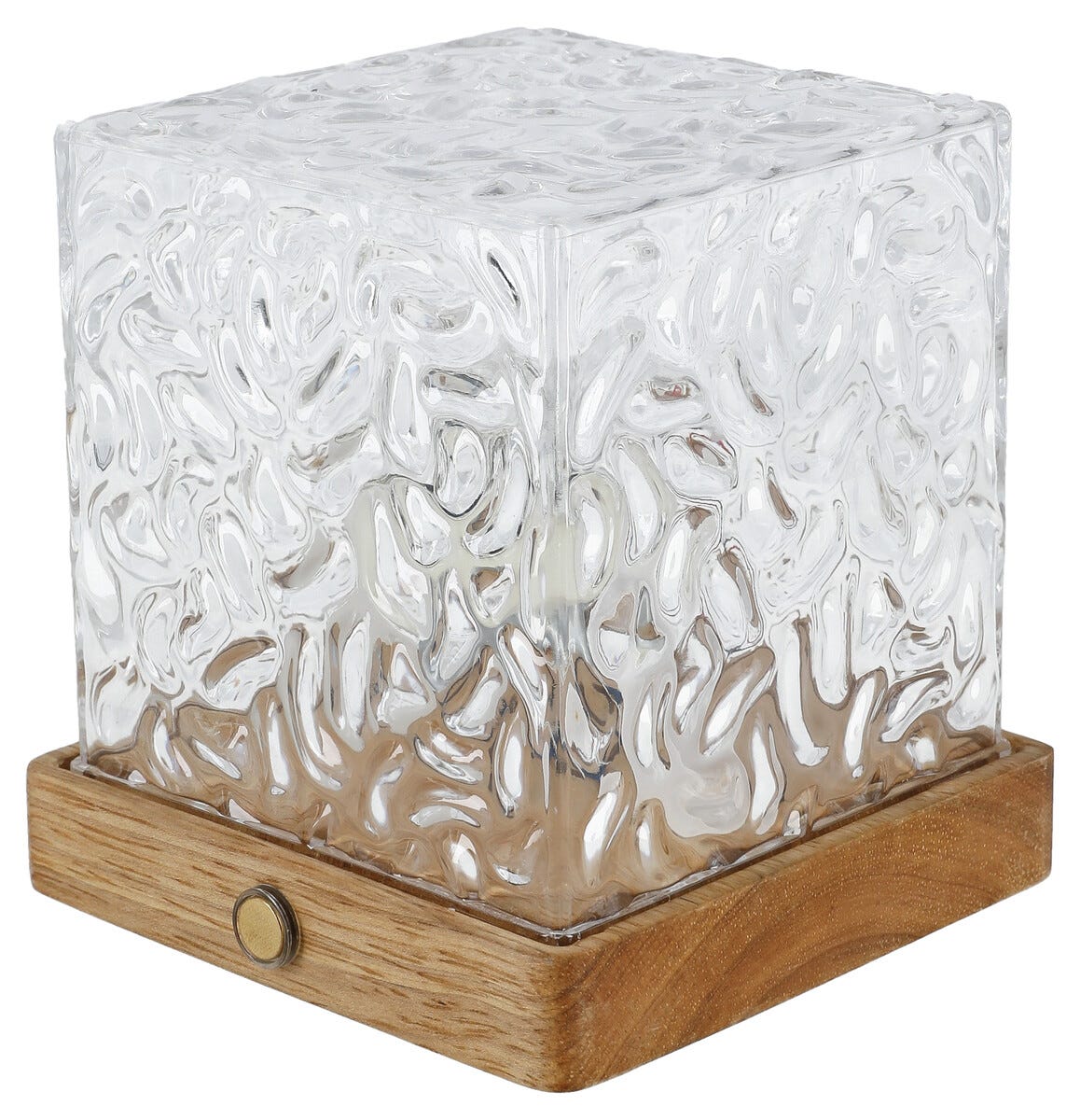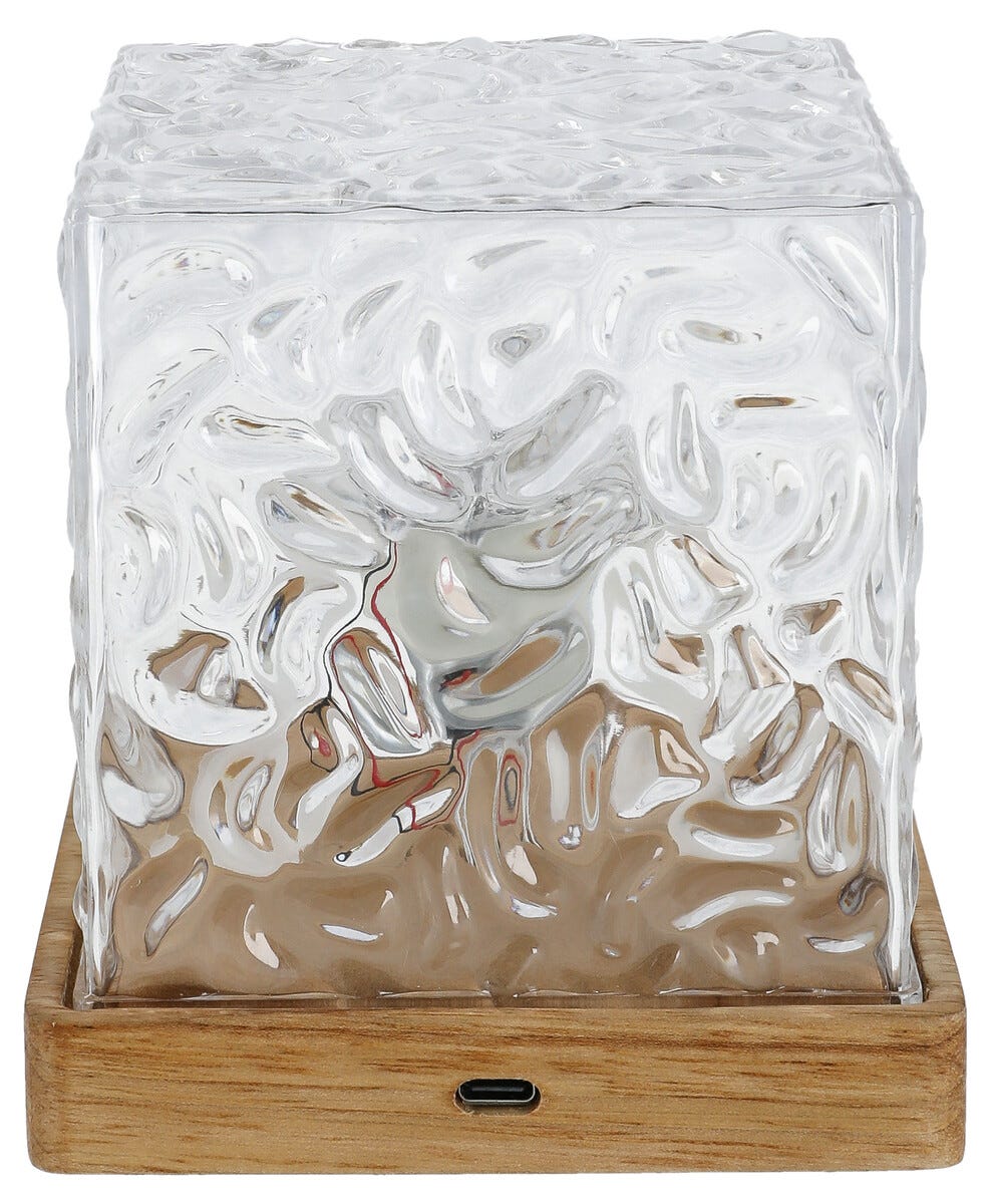 • Northlight Mimi bærbar bordlampe – firkantet glasskube med tresokkel.