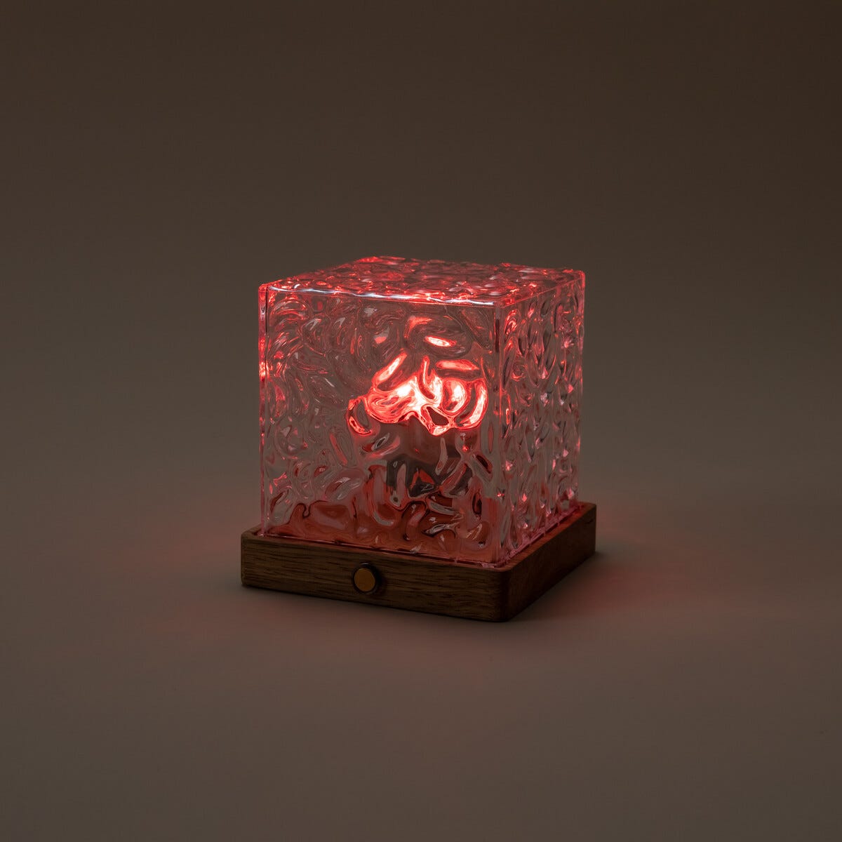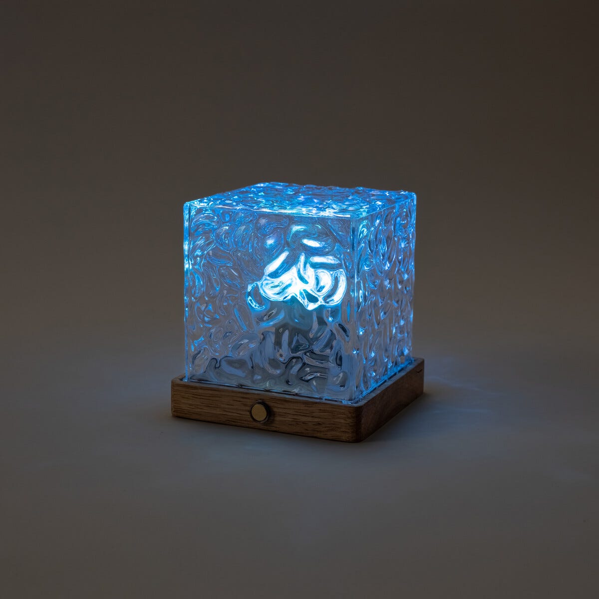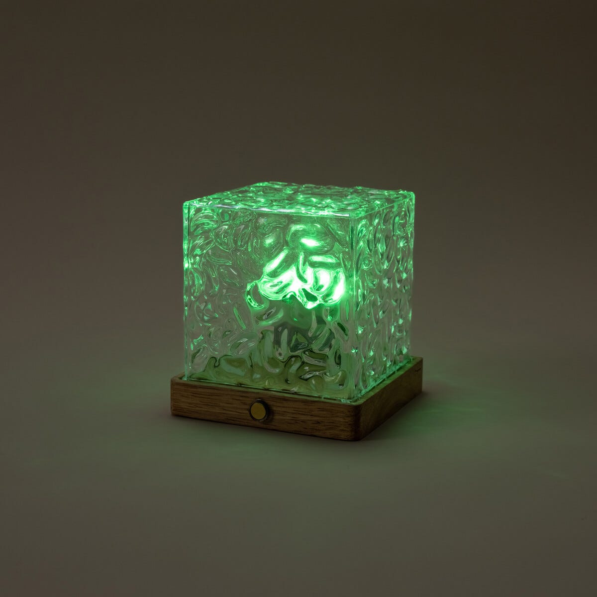 • Northlight Mimi bærbar bordlampe – firkantet glasskube med tresokkel.