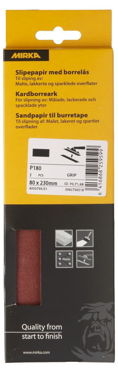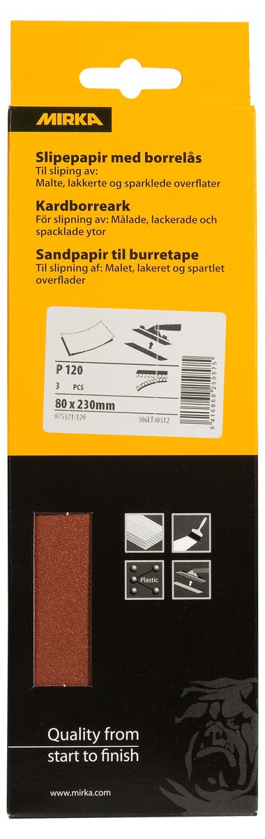 Mirka slipepapir med borrelås 80 x 230 mm, 3-pakning