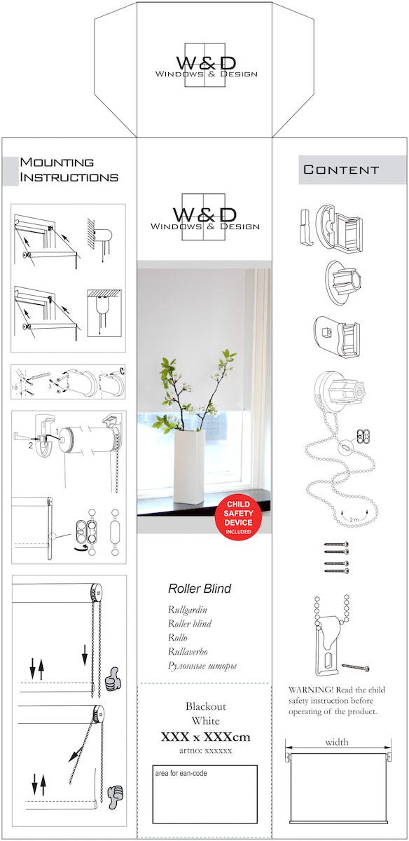 • Trinnløst sidetrekk gjør det enkelt å justere rullegardinen i ønsket høyde.