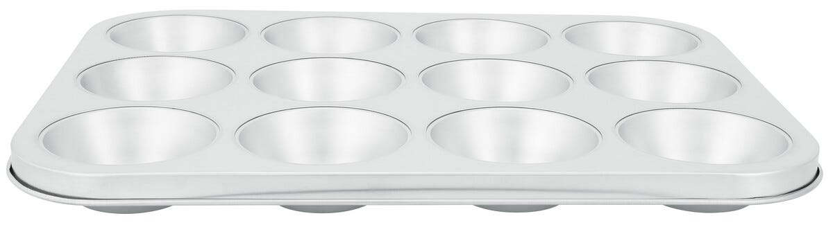 • Muffinsbrett av rustfritt stål med lang levetid.
