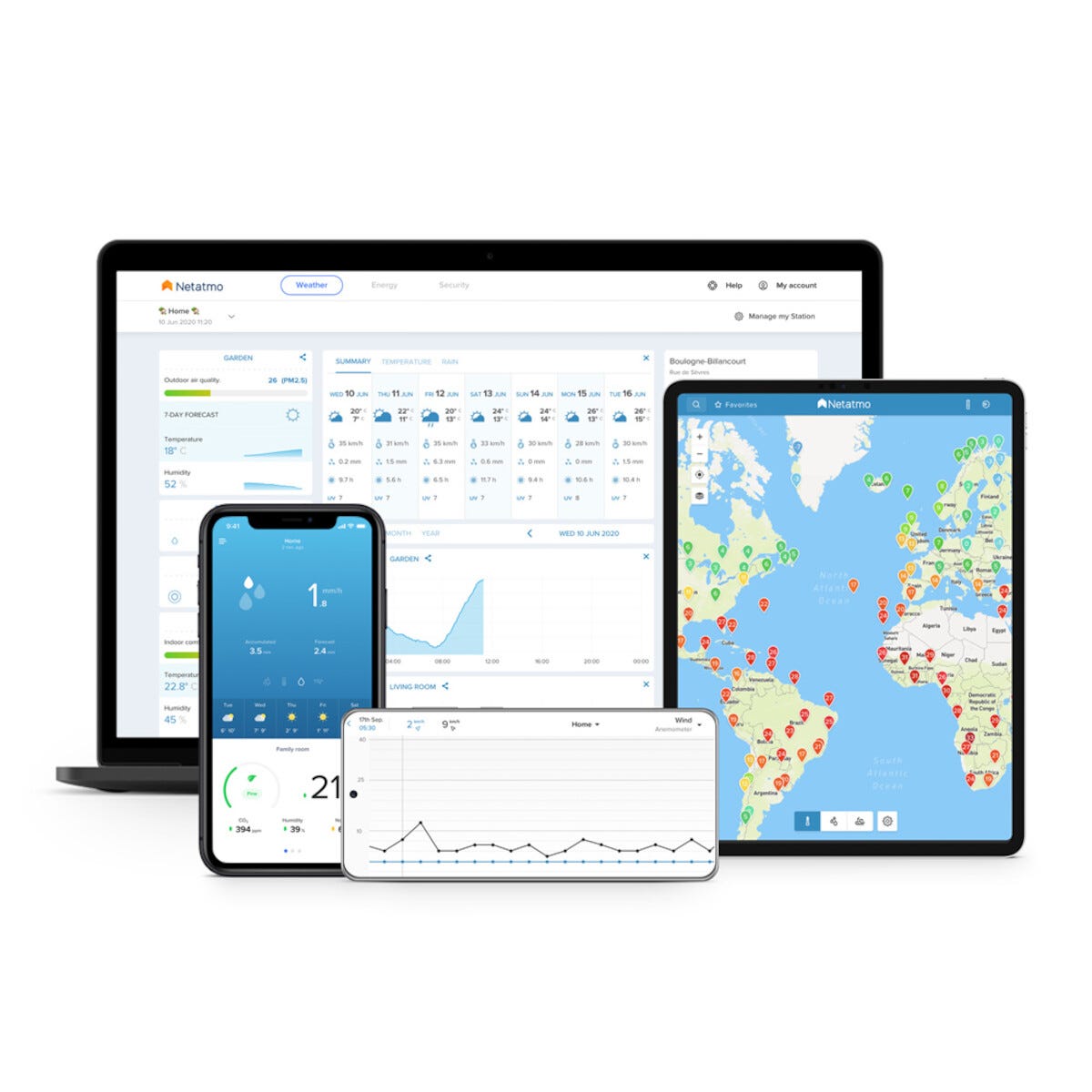 • Netatmo smart værstasjon WiFi – for detaljerte lokale værdata, historikk og et smartere hjem.