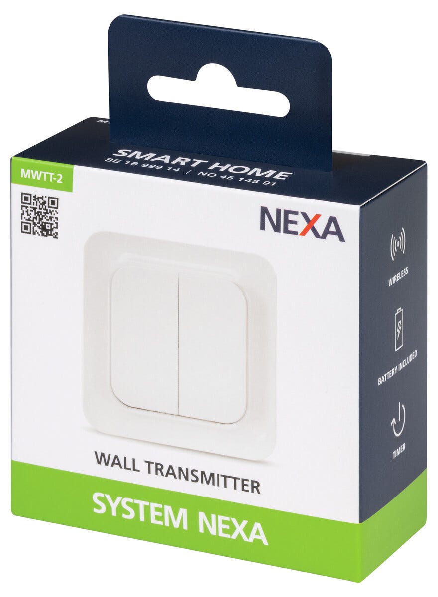 • Nexa MWTT-2 veggsender – 2-kanals veggsender med 30 m rekkevidde.