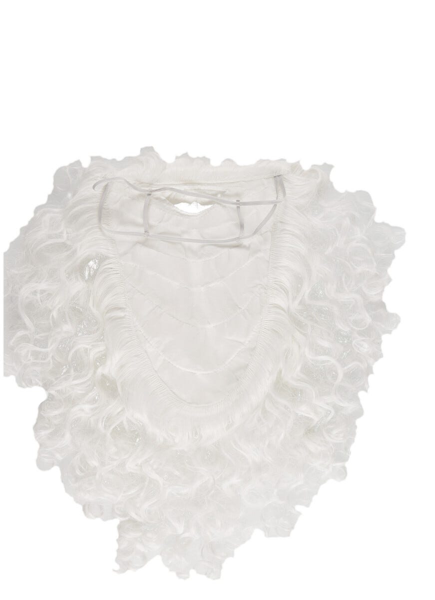 • Hvitt nisseskjegg med generøse lokker – 60 x 50 cm.