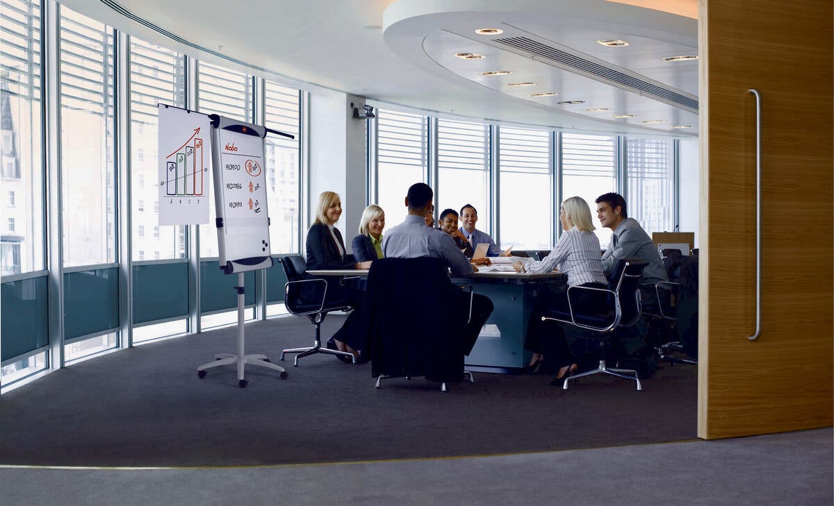 • Mobilt flipoverstativ med robuste låsbare hjul.
