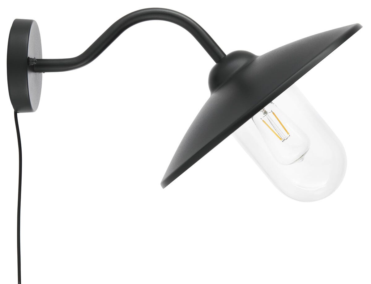 • Vegglampe med svart skjerm i jern og klart lampeglass.