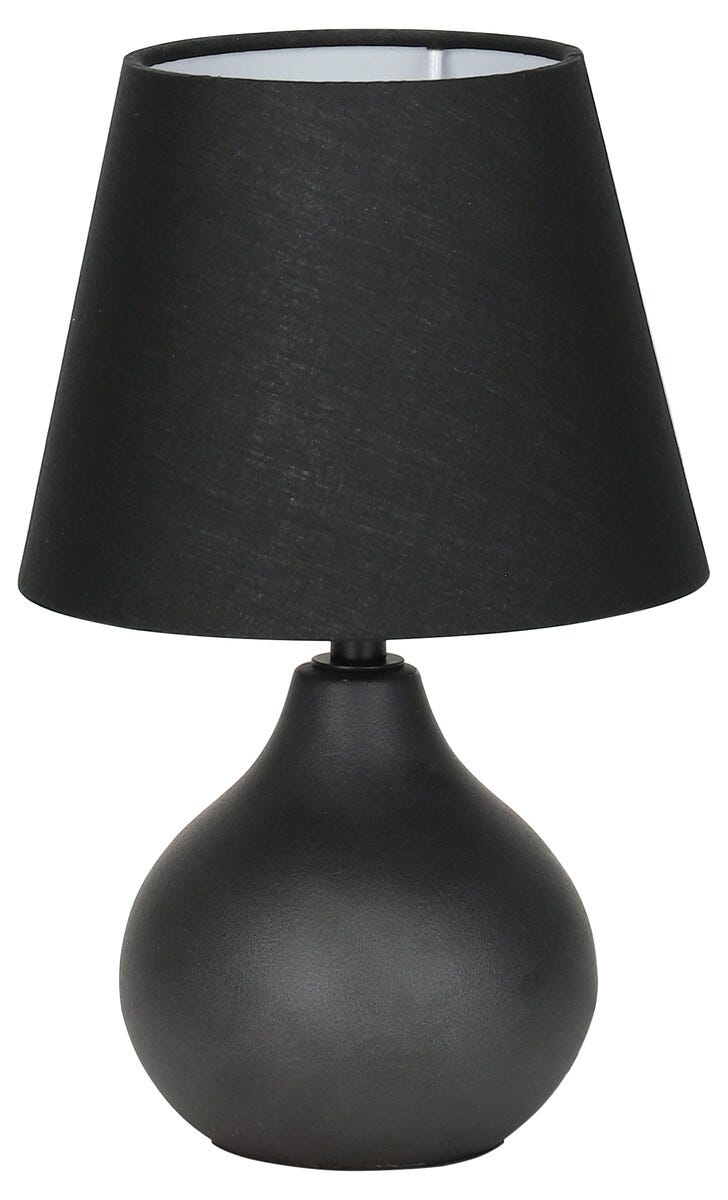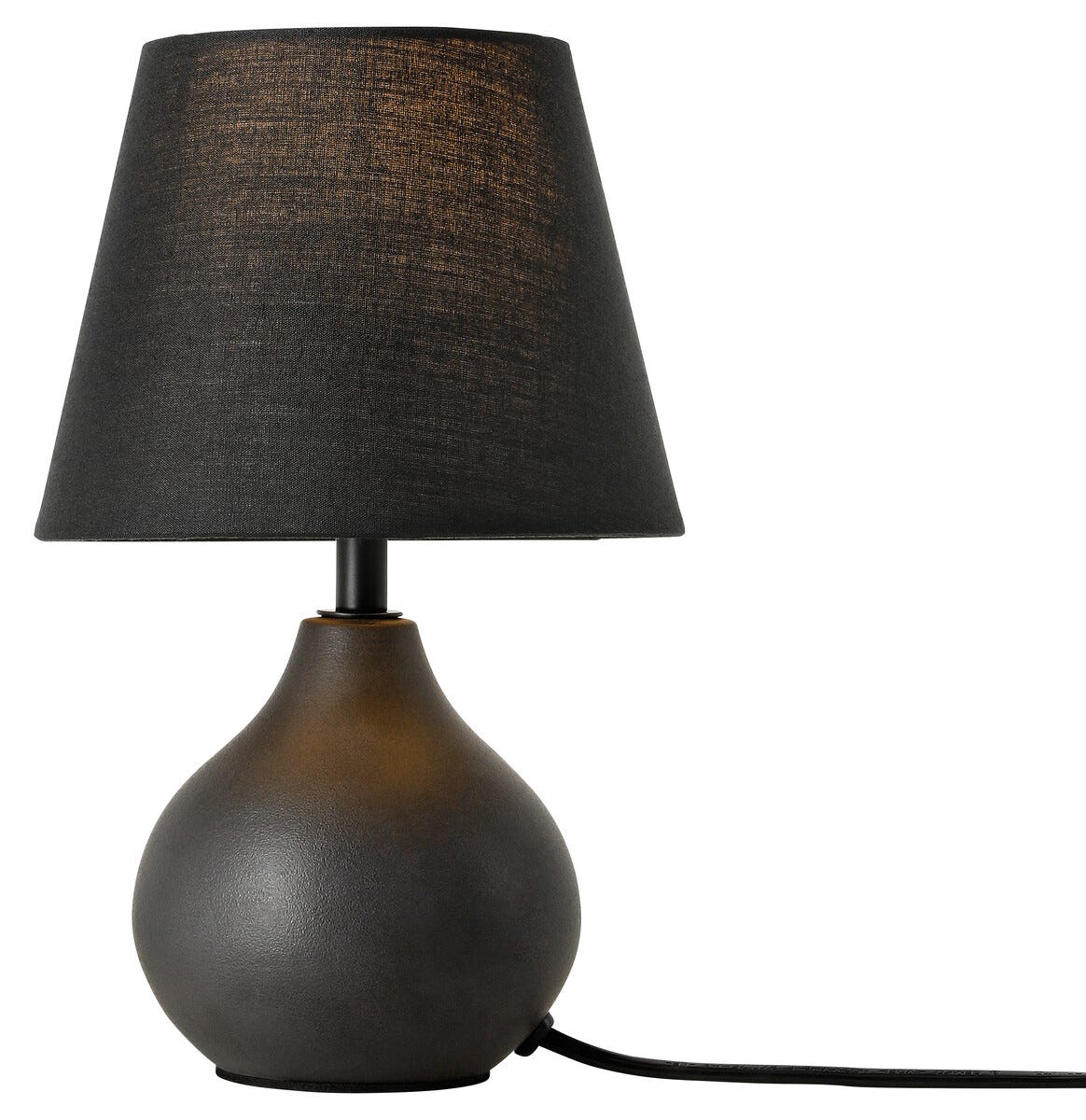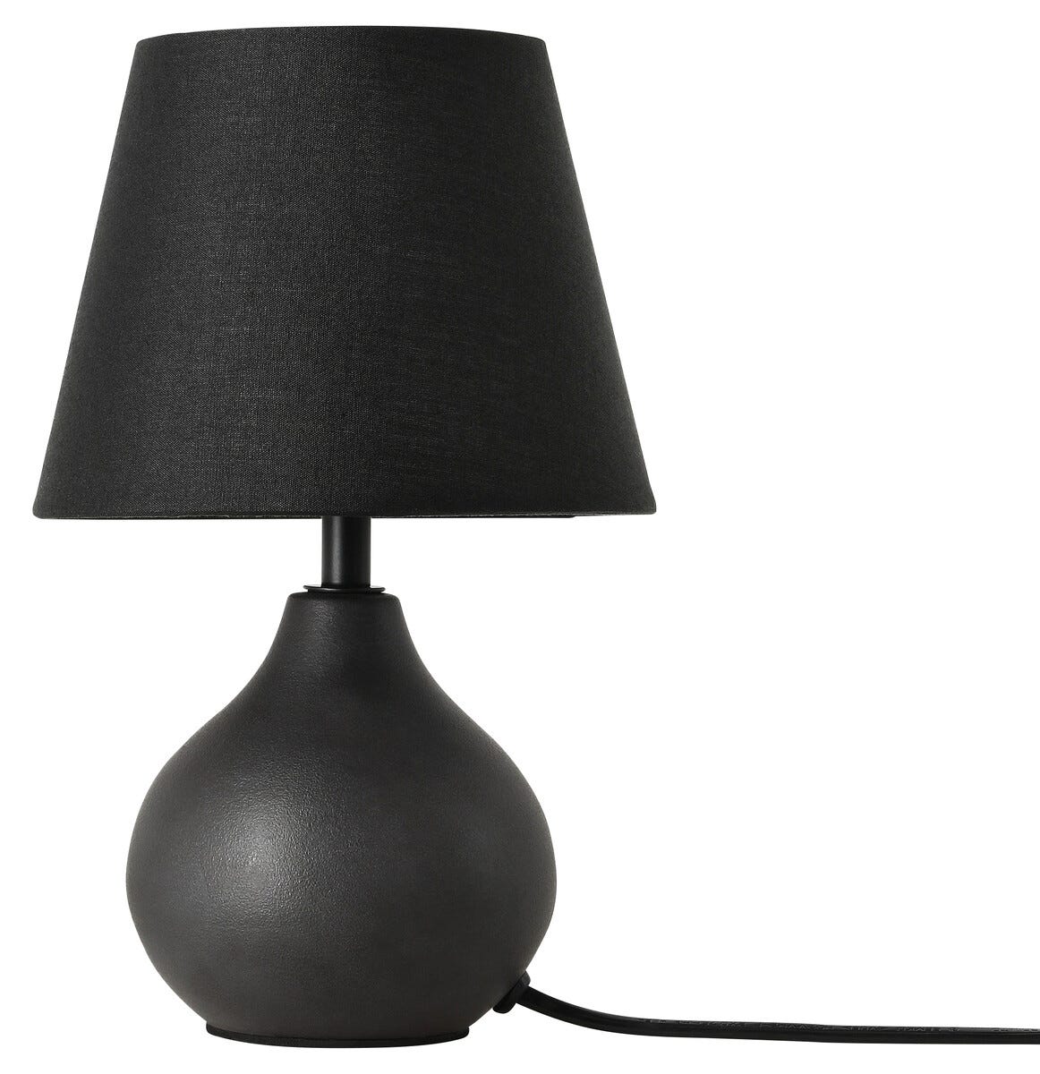 • Liten bordlampe med dråpeformet lampefot i mattsvart keramikk.