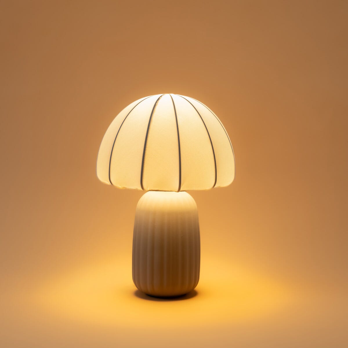 • Keramikkfot med diskrete riller – dekorativ også når lampen er slukket.