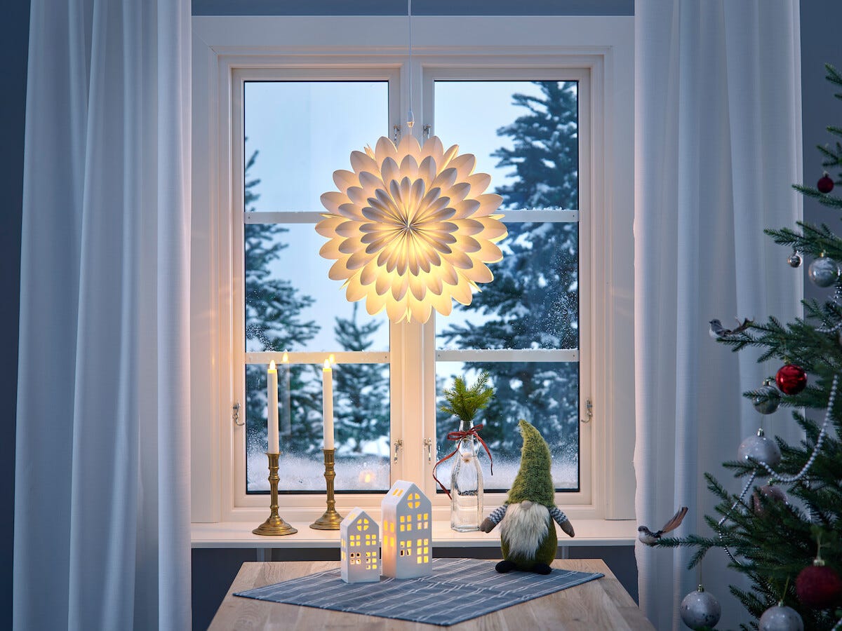 • Fin julestjerne som kan plasseres i et vindu eller lengre inn i rommet.